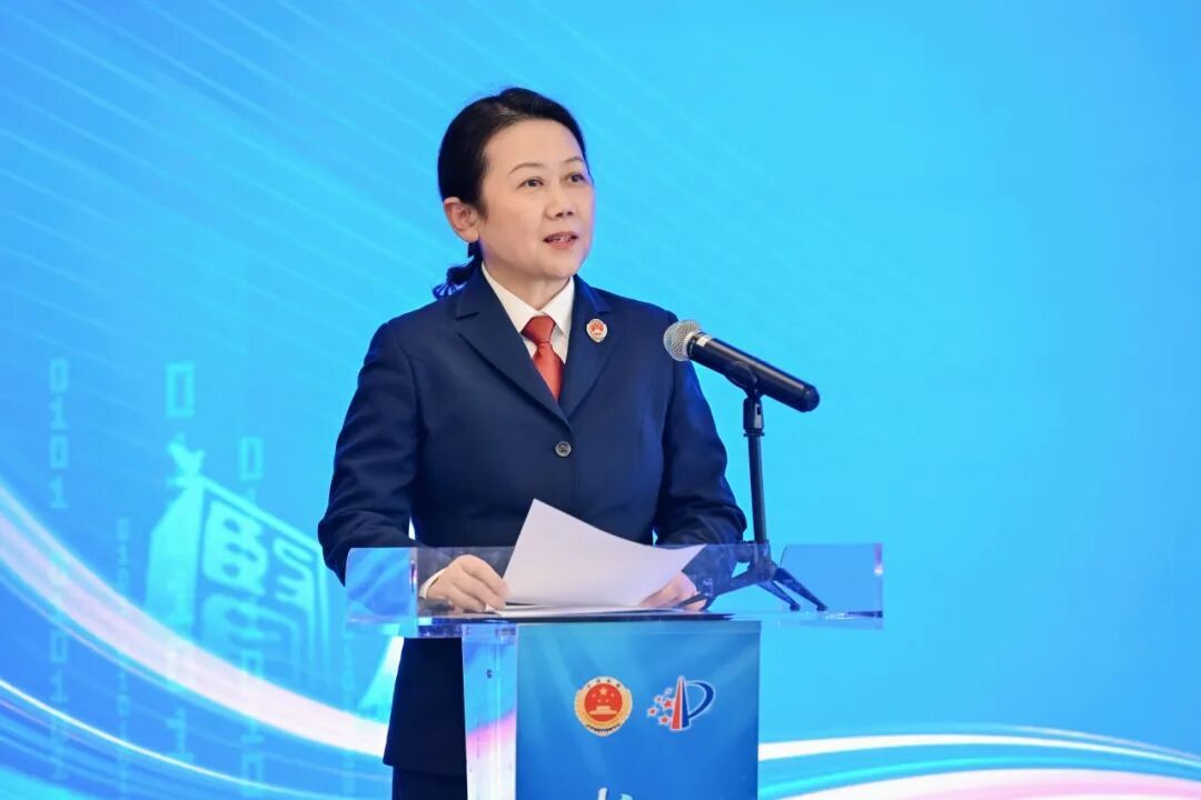 市检察院第三分院、虹桥管委会、浦东新区检察院、临港新片区市场监督管理局,黄浦区、徐汇区、杨浦区、闵行区、奉贤区检察院与知识产权局共同启动上海检察机关“法治副园长”进驻数据知识产权登记服务窗口仪式。