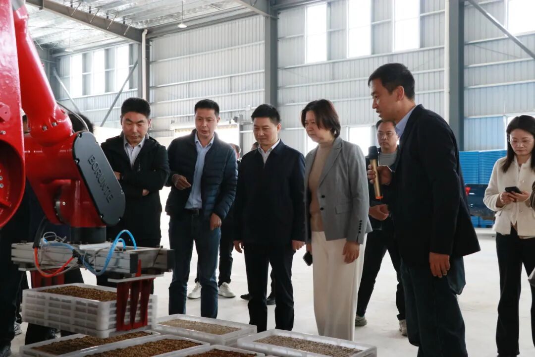 会前,与会人员走进富蓝公司水稻工厂化育秧现场,实地考察育秧流水线作业情况,并详细听取了企业关于基质研究及产业化进展的介绍。