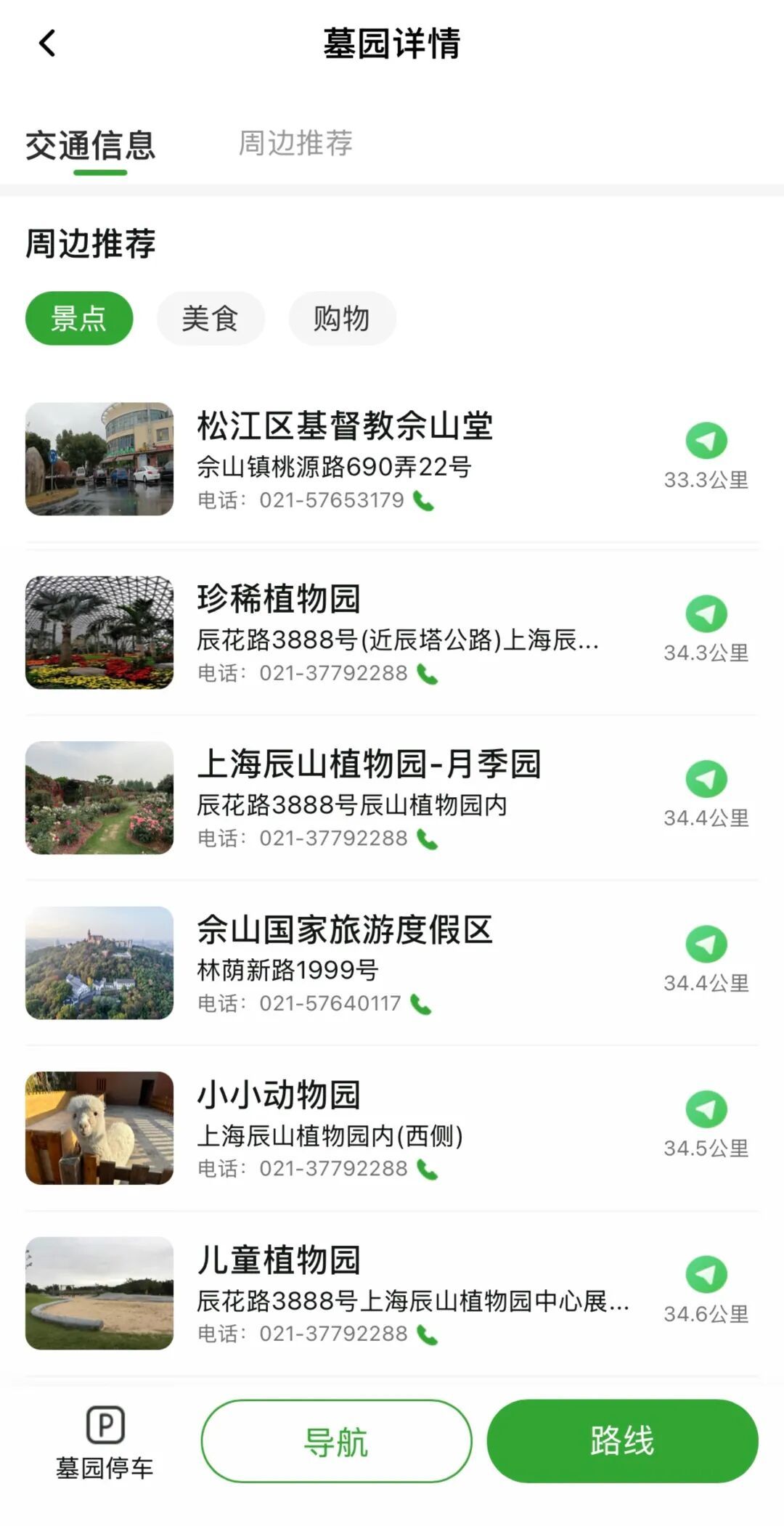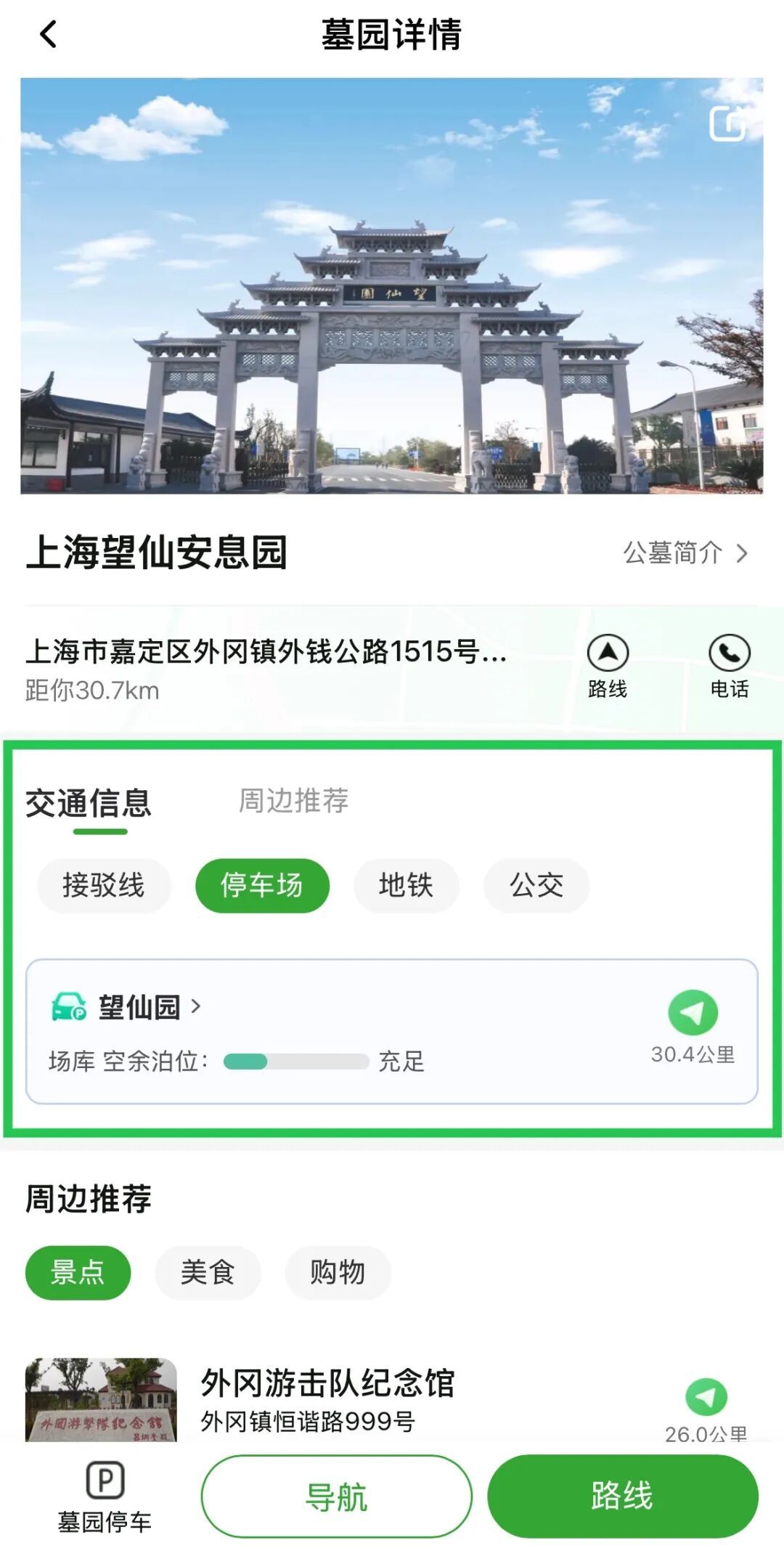 在“祭扫通”专区找到墓园详情页,点击下方“导航”,即可直接规划驾车路线,沿途还能查看实时路况,方便避开拥堵路段。