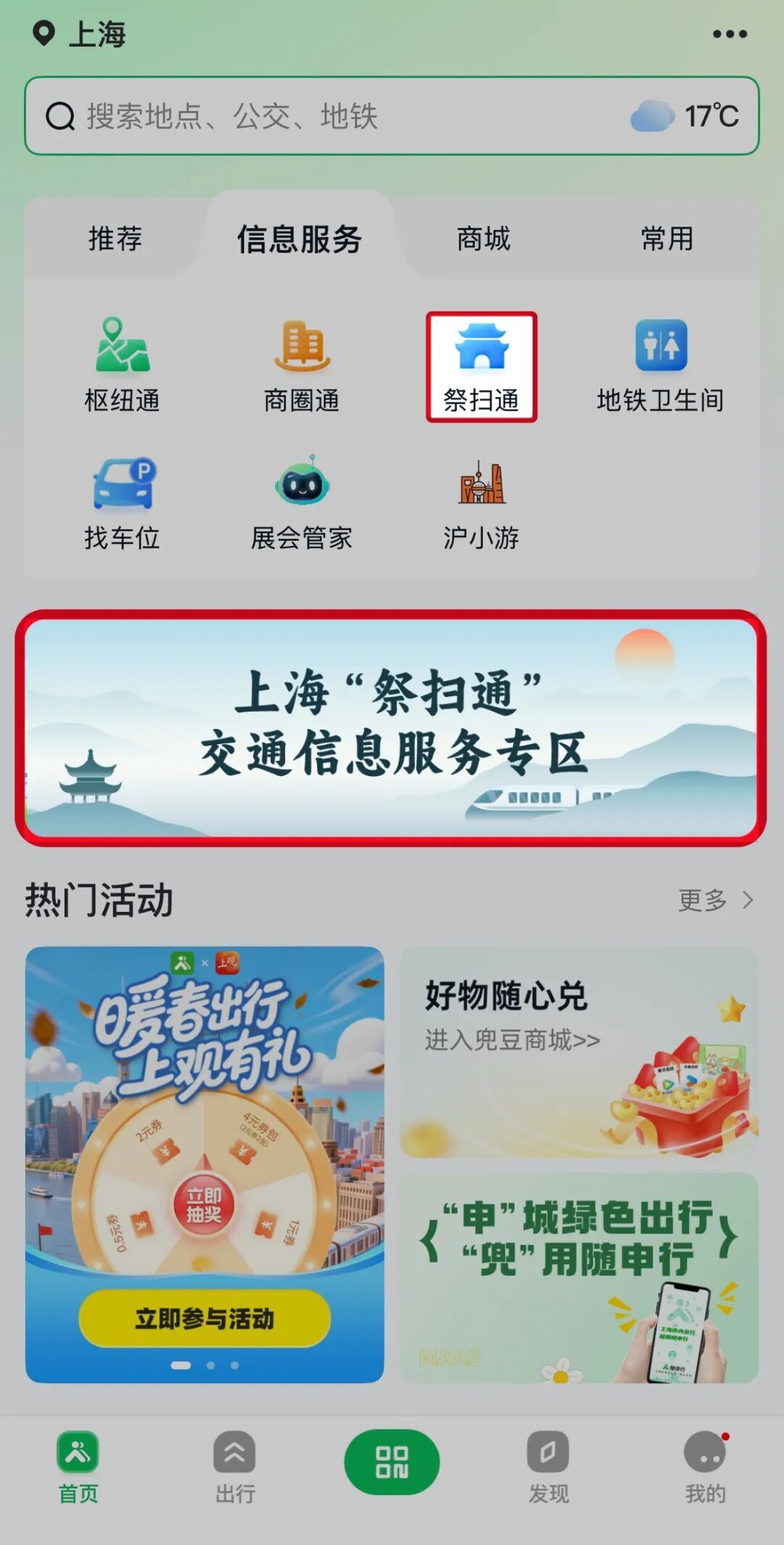 市民可通过“随申行”APP或微信小程序首页进入专区,也可通过“随申办市民云”搜索“祭扫通”找到专区入口。