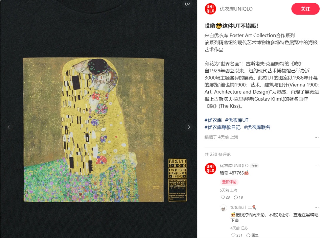 优衣库早已上架这款名画印花T恤。