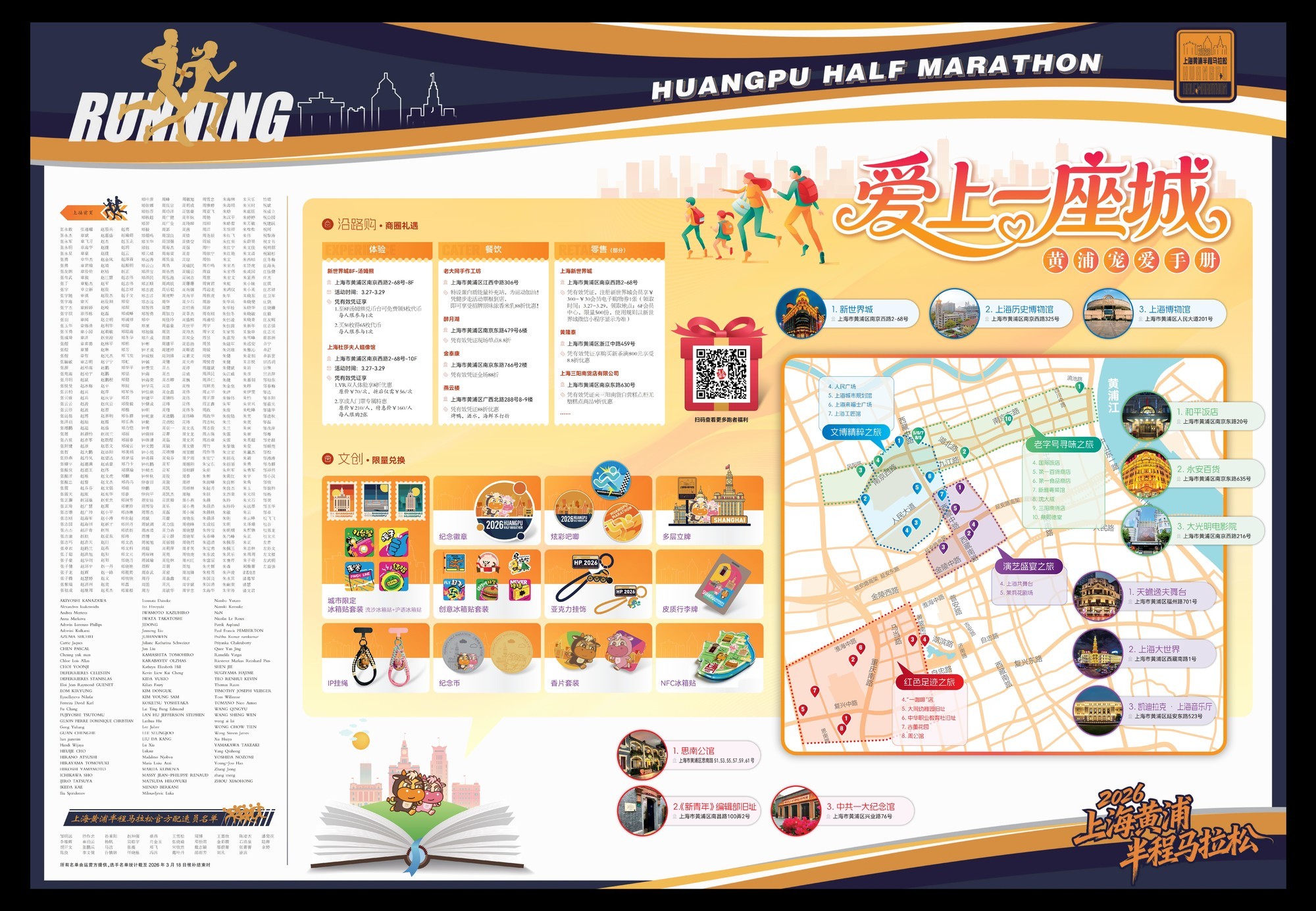 为体现对专业赛事的重视与服务广大参赛选手的意识,《黄浦报》再次推出《黄马特刊》,涵盖了“高水平”办赛、“高颜值”赛道、“高流量”参与的“三高共耀”,红色足迹、老字号寻味、文博精粹、演艺盛宴等四大主题微旅行线路等内容,发布了赛道图及获取专属赛事照片的路径,致力于践行“文商旅体展”融合发展理念。值得一提的是,本次特刊采用超过两个版的篇幅,精心刊登了全部黄浦半马跑者与官方配速员的名单,让每一名参与其中的人都能深切感受到黄浦的温度与魅力。