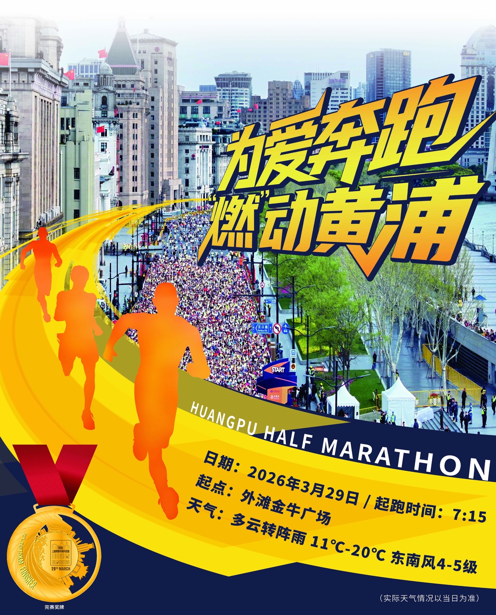 3月29日早上7点15分,以“为爱奔跑”为主题的2026上海黄浦半程马拉松将在外滩金牛广场鸣枪开跑。