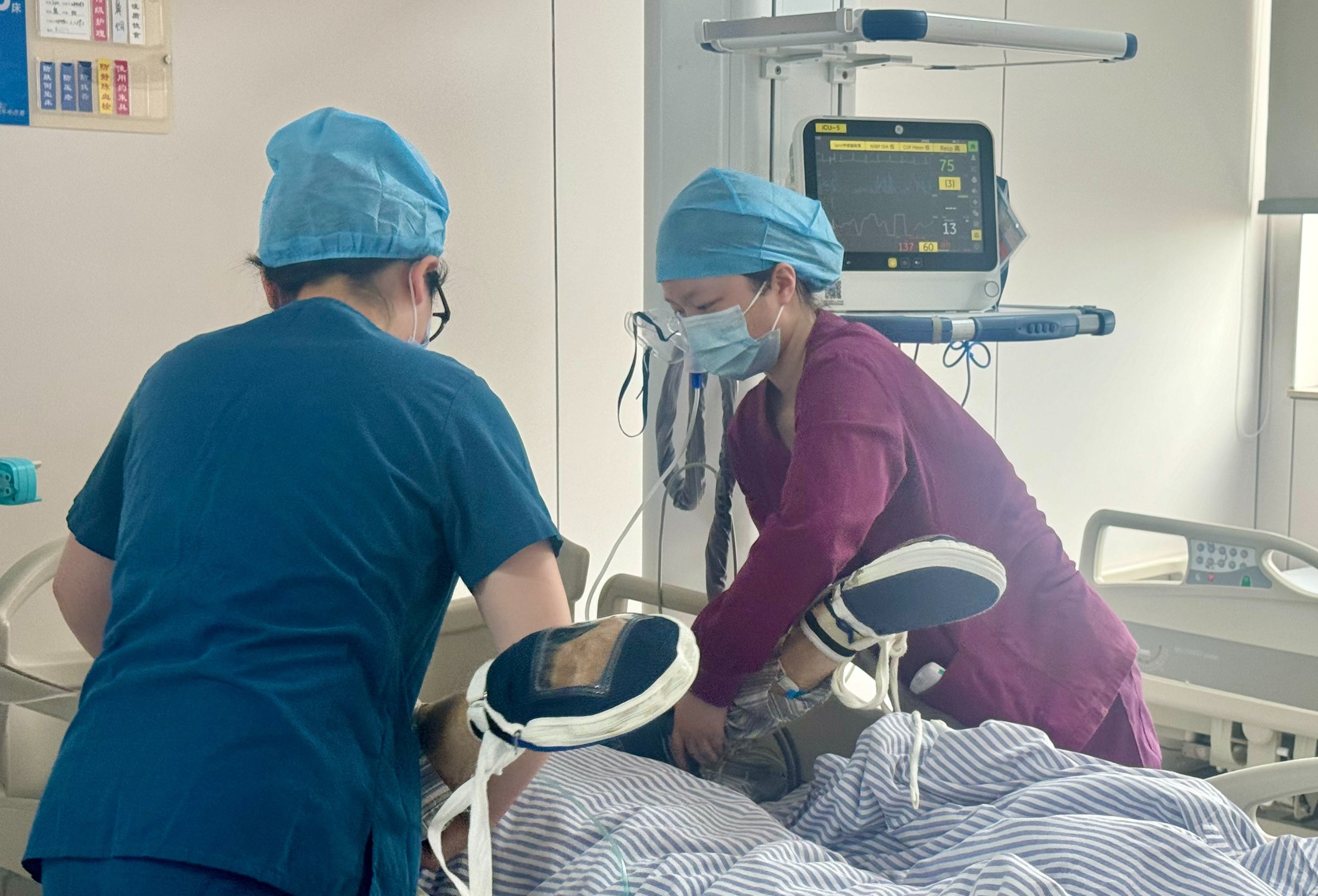在泗泾医院ICU(重症监护)病区,“00后”医疗护理员钮子笑正与责任护士一起,为一位高龄患者翻身、拍背。她一边操作,一边仔细查看电子系统提示,逐一完成各项照护任务,动作熟练而轻柔。今年3月,泗泾医院正式启动“免陪照护”服务试点工作,而逐渐年轻化的护理员队伍,正成为这项新服务中专业的新生力量。
