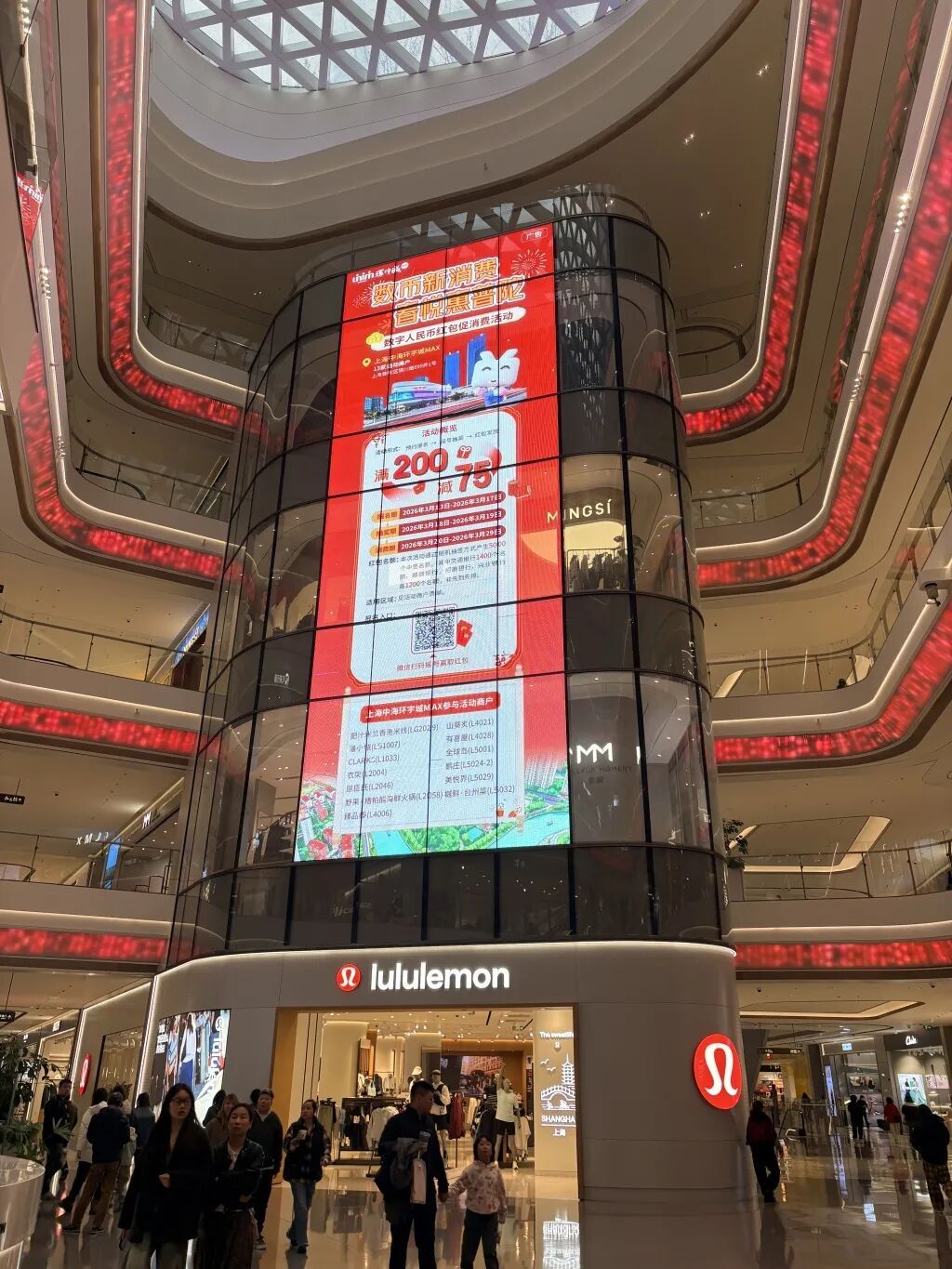 据悉,本次数币红包的核销范围并未局限于个别试点门店,而是广泛覆盖了中海环宇城MAX、真如百货、中环百联等区域内的热门核心商圈。在商户矩阵的构建上,更是精准对接市民的高频消费需求,联动了屈臣氏、第一食品、宝大祥等三十余家市民耳熟能详的商户。