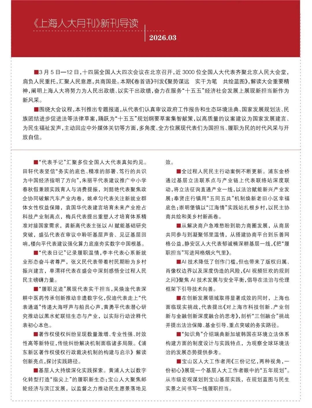 导读 | 2026年第3期《上海人大月刊》