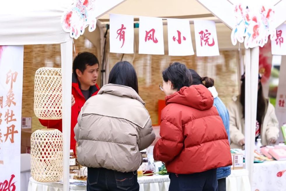 园区另一侧,春日市集热闹开市,为牡丹节注入更加丰富的文化内涵与消费场景。3月27日至29日,市集连续三天开放,设置云南泸水特色市集、春日文化市集两大板块,涵盖非遗手作、在地风物、潮玩文创等多个品类。