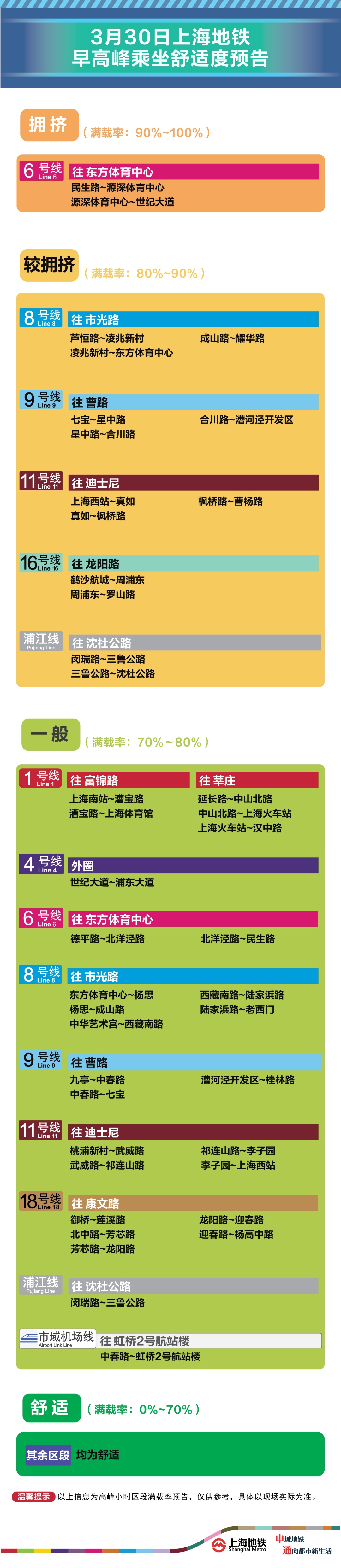 为提升上海地铁早高峰期间出行服务水平,提升乘客乘坐体验,上海地铁向乘客提供乘坐舒适度预告,方便乘客提