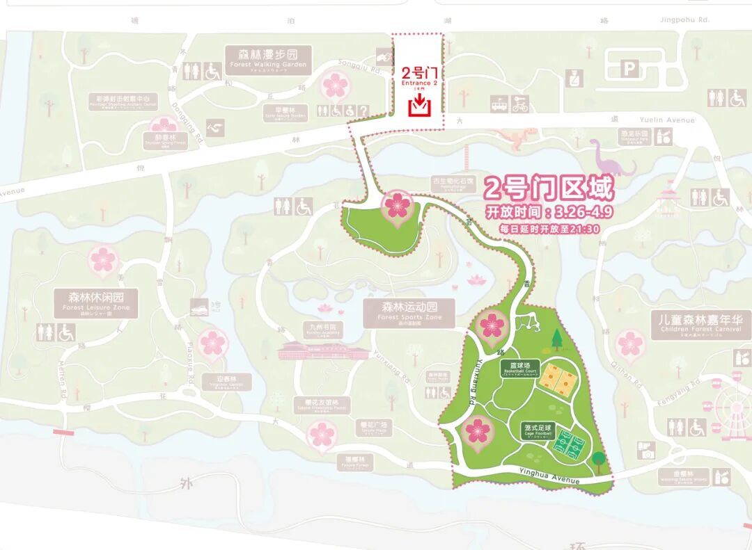 二号门:早樱林、栖杉路