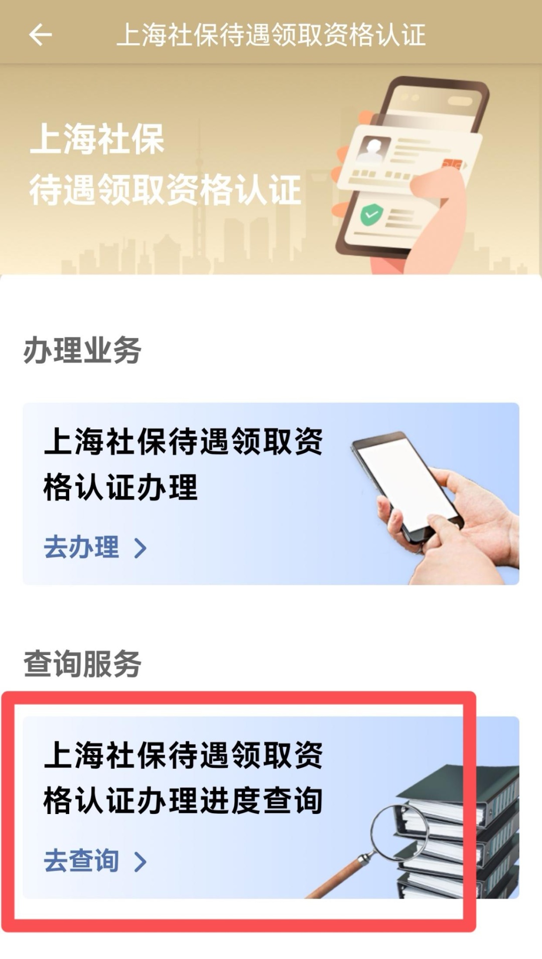 3、点击“上海社保待遇领取资格认证办理进度查询”,进入查询界面;
