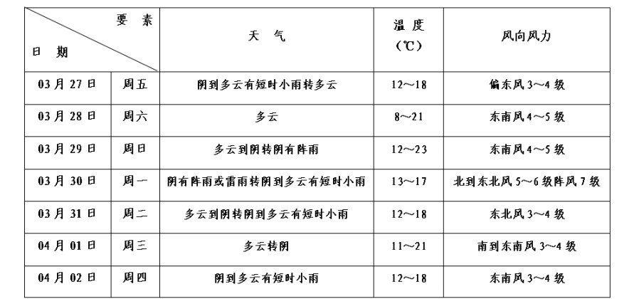 本区未来十天天气预报