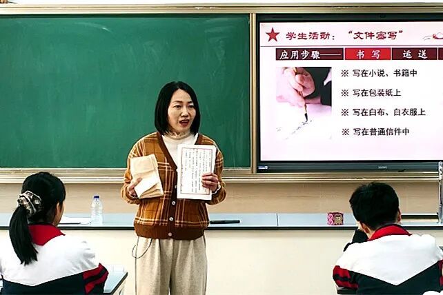 党的秘书工作者为严守党的机密、守护核心文件,创新运用药水密写、期刊封面伪装等一系列隐秘手段,将一封封红色信函突破封锁、安全传递。回到实验课堂,同济大学附属七一中学白榆老师化身科普导师,结合生物学科知识,以柠檬汁遇热变色、淀粉遇碘液显色等经典实验为切入点,现场揭秘情报“伪装术”的科学原理,实现“红色历史”与“生物学”的跨界融合,让思政教育更具趣味性与知识性。