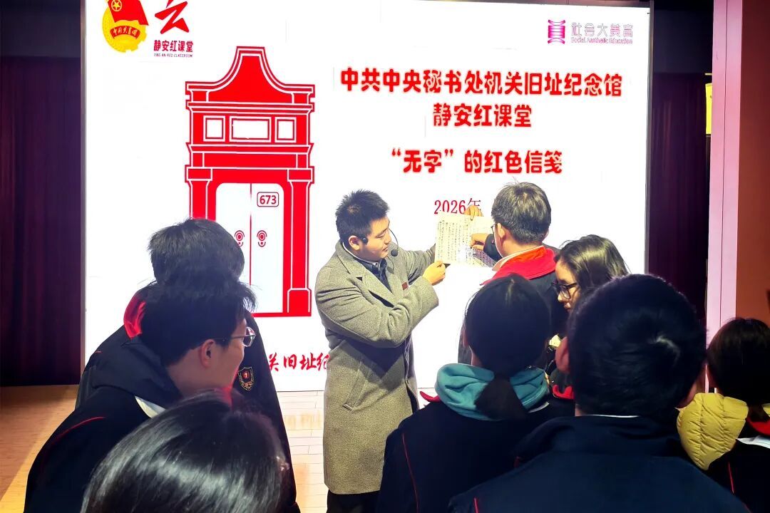 一纸密信藏初心,实景课堂颂忠魂。日前,“静安红课堂”——“无字”的红色信笺沉浸式思政课在中共中央秘书处机关旧址纪念馆开讲。来自同济大学附属七一中学“燃冉中队”的青少年们走进历史原址,沉浸式探寻红色密码,开启一场红色历史与学科教育深度交融的别样学习之旅。