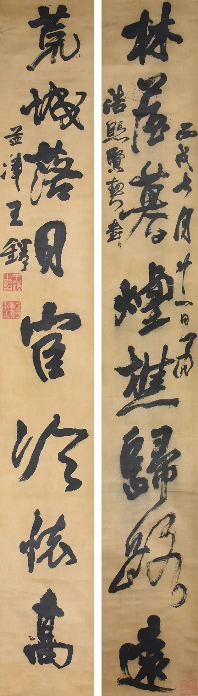 他在书法线条上追求纵横之间渗化而成的墨块,独创其“涨墨”之法,实在是前无古人。王铎利用墨的枯润、浓淡的大反差,使作品产生动荡与跳跃,让本来静态的书法活了起来,方寸之间尽显笔力雄强的浩荡之势。