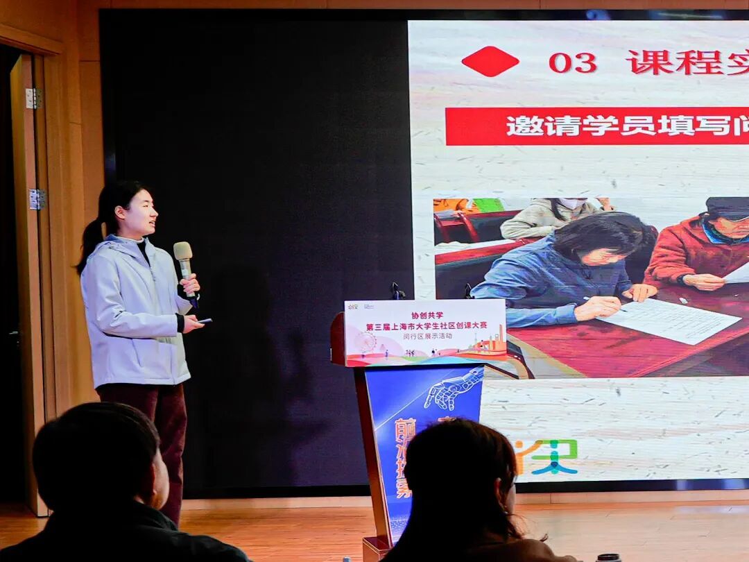 自大赛启动以来,华东师范大学、上海师范大学、中侨职业技术大学、上海电子信息职业技术学院、上海商学院、上海立信会计金融学院等高校学生积极组成赛队,参加闵行赛区比赛。他们走进闵行区的街道里弄,聚焦居民在身心健康、法律安全、数字融入、文化传承、家庭建设等方面的真实需求,一个个创意设想从“纸面方案”一步步走向“社区课堂”。