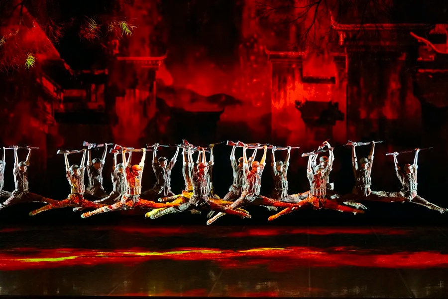 在“借被子”这一核心情节的处理上,编导以轻喜剧的舞蹈语汇加以呈现。通讯员与新媳妇之间的拉扯、躲闪、笨拙与真诚,在足尖的律动中演绎出硝烟岁月里难得的人情暖意。上半场的温情与下半场的悲壮形成鲜明对照,这种反差并非叙事的割裂,而是通过鲜活生命的陨落,让观众在强烈的情绪冲击中感受战争的无情与和平的珍贵。