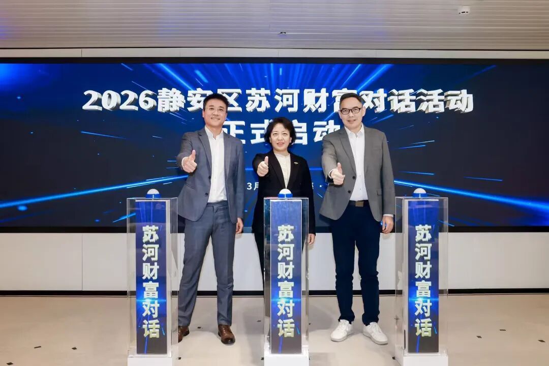 区投资办、财联社、海通并购基金负责人共同按下启动按钮,启动2026年“苏河财富对话”系列活动。