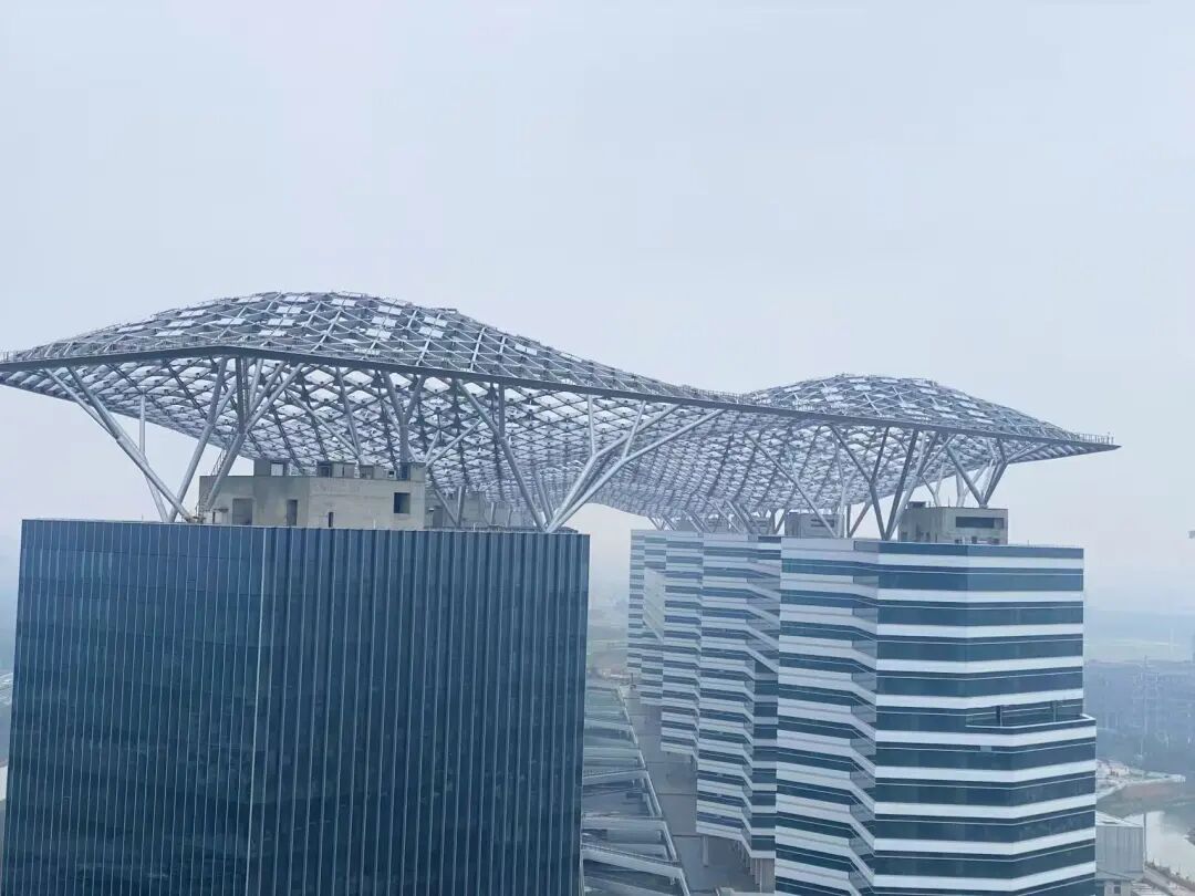 在此之前,是无数个技术攻坚的日夜。2024年底,云顶网壳成功合拢,其建设难度曾创下多项“世界之最”。项目在国内民用建筑中首家使用了强度更高的690型高建钢,并通过创新工艺解决了焊接难题。在幕墙安装阶段,面对高空连廊的施工挑战,团队创新采用了“滑动轨道+长吊篮”方案,攻克了高空复杂的安装难题。