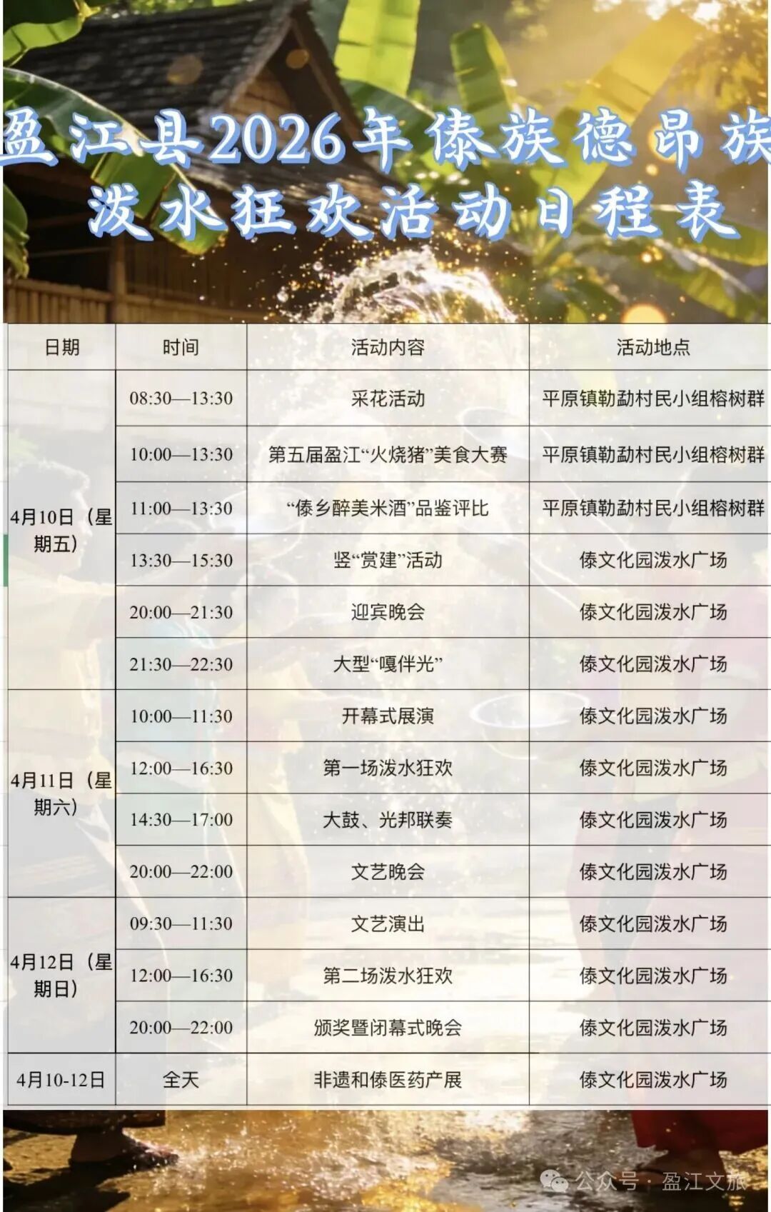 优势:乡村+采花仪式浓;景罕广母山采花、上章凤村乡村泼水;赶摆+非遗+美食多;人少、更安静。