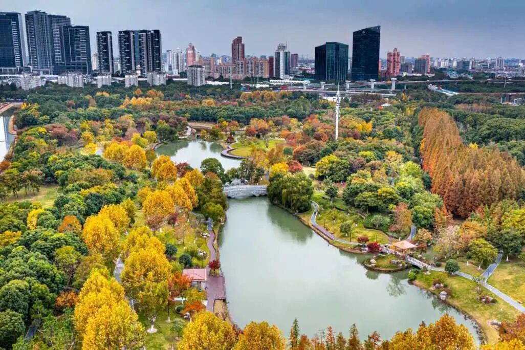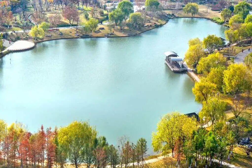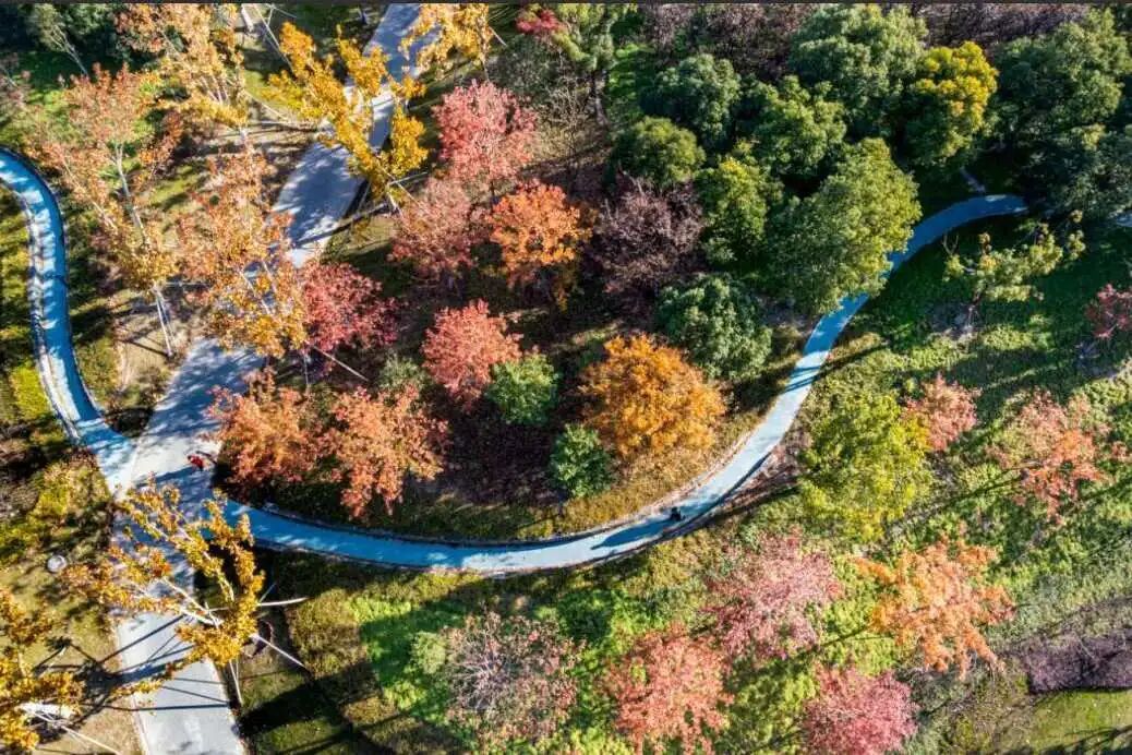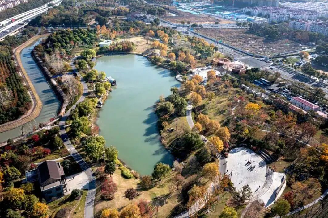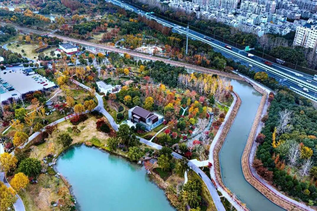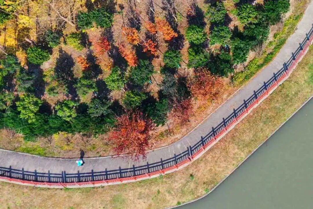 梅陇生态园的变迁更令他动容。最初,他穿过听翠园、得翠园,后来打造“党建公园”“红船”,一大会址式样的石库门牌楼等陆续建起。春来秋往,他以无人机俯瞰天地,借红外镜头捕捉微光,记录公园的四季流转与生灵踪迹。一组红外片子被蔡兵美术馆收藏,另一组登上澎湃新闻。