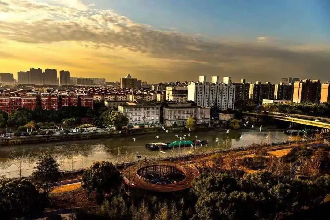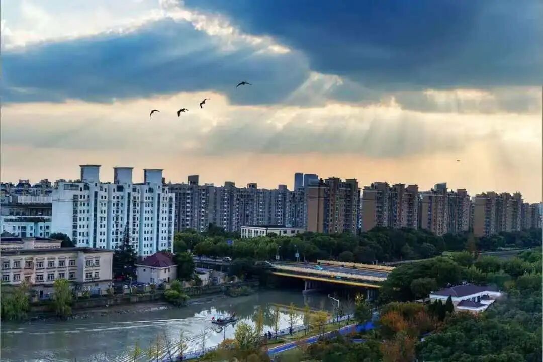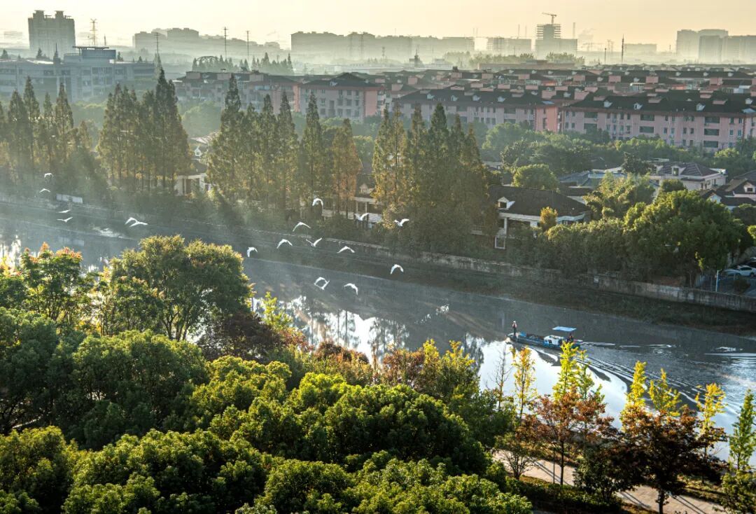晨光中,淀浦河面波光粼粼。李卫按下快门,又一天的梅陇,被定格在“八公山人”的光影里。