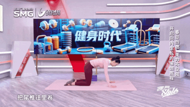 动作要点:双手置于肩膀正下方,膝盖在髋关节正下方,大腿和双臂垂直于地面,感受顺畅的呼吸。从尾椎开始上起、腰椎下沉,打开胸腔、仰头向上,顺着呼气把尾椎往里卷,腰椎、后背拱起,整个人身体的形态像一座春日的高山拔地而起。