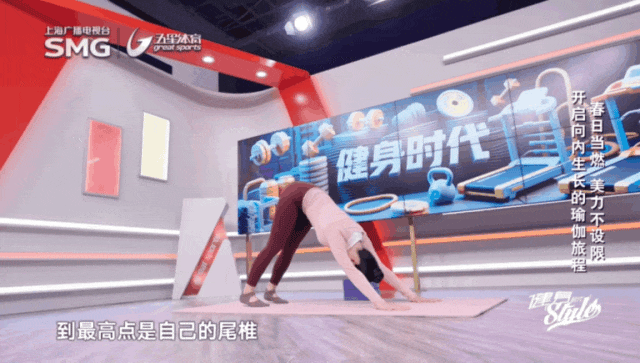 动作要点:将双脚勾地、膝盖缓慢离地、臀部向上推起,将后背推直。十个手指压紧地面,手臂向上推,肩膀放松、大臂外旋、离开自己的耳朵。脊柱向上推,让脚后跟往下踩,保持顺畅的呼吸,感受上半身的血液倒流,就像春日山上的溪水环山而行。