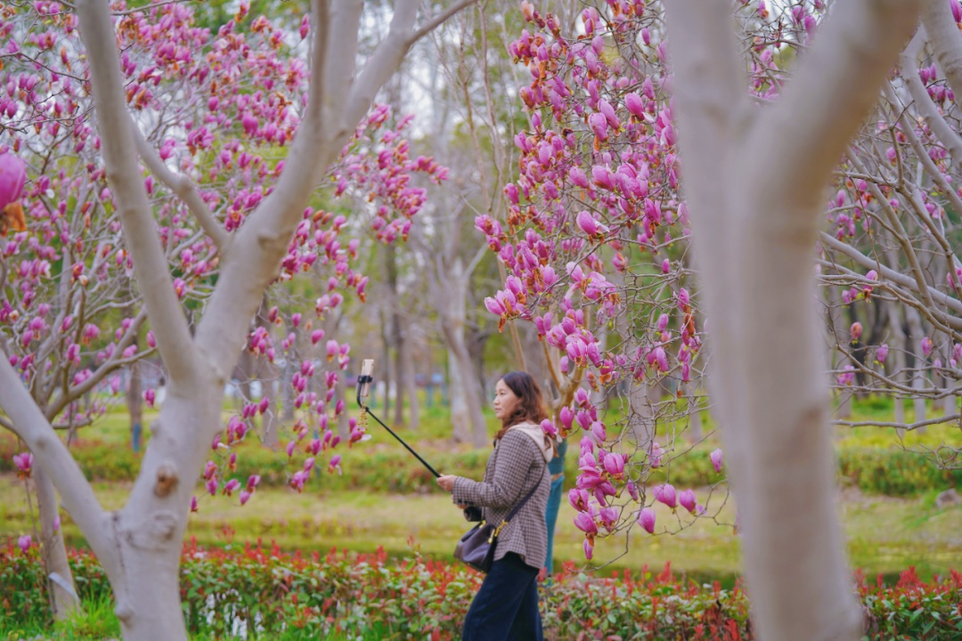 “玉兰开成一树,才惊觉春已深……”游客杨洁每年都会来赏花,用手机和相机记录下眼前的春光。对她来说,这些照片便是春日最好的纪念。