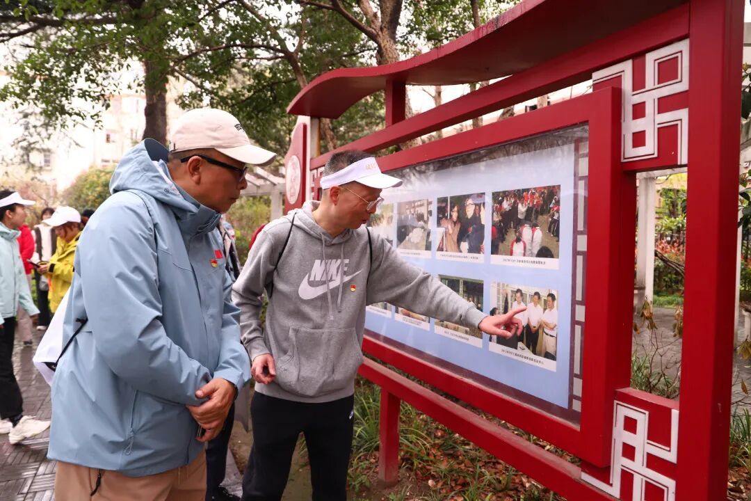 随着发令哨响,来自各共建单位的党员代表及曲阳社区居民,从本次活动的起点——百联曲阳购物中心广场出发,依次前往曲阳社区曲苑、永安百货绮云阁等点位完成打卡任务。