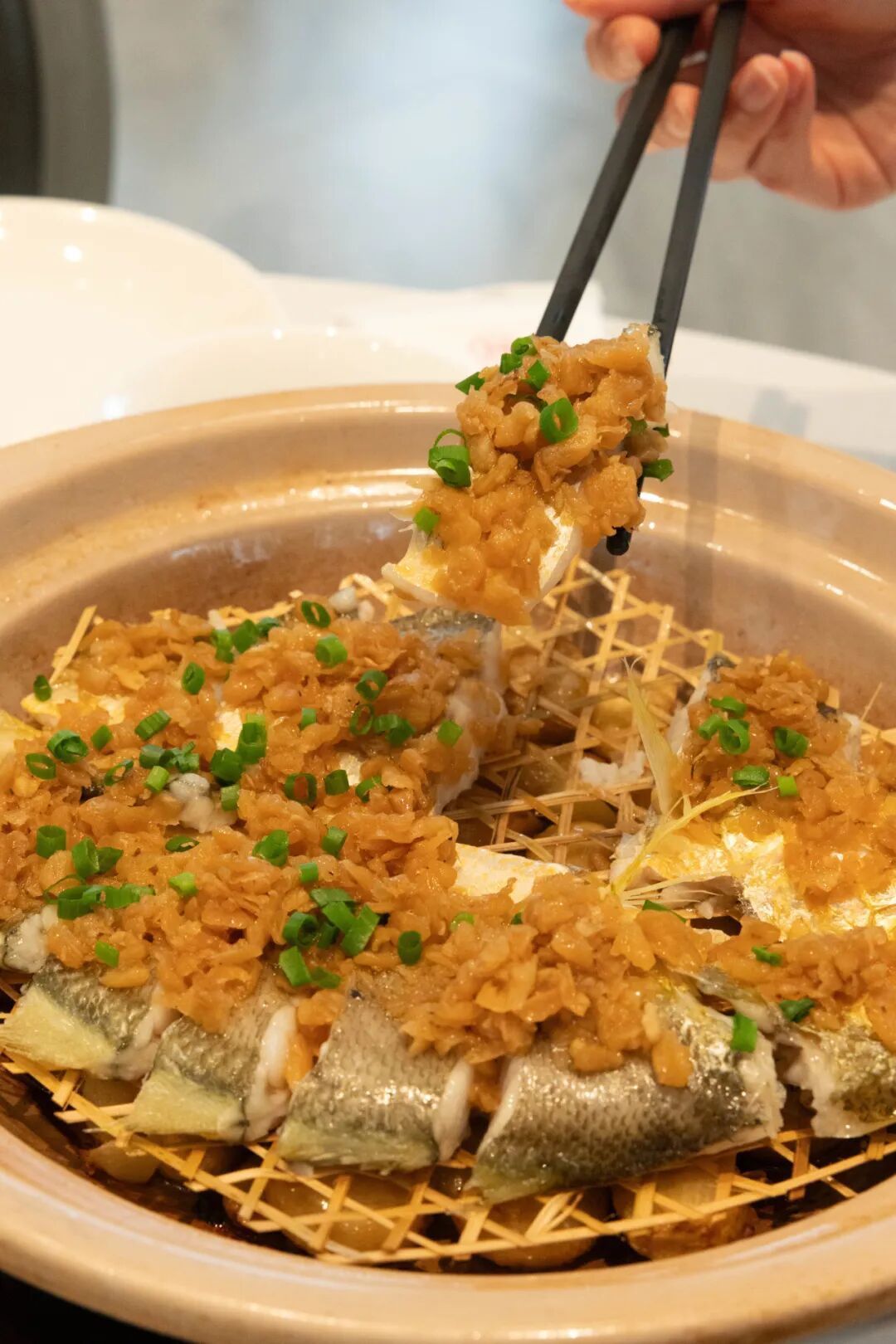 菜脯焗黄鱼看起来清清爽爽