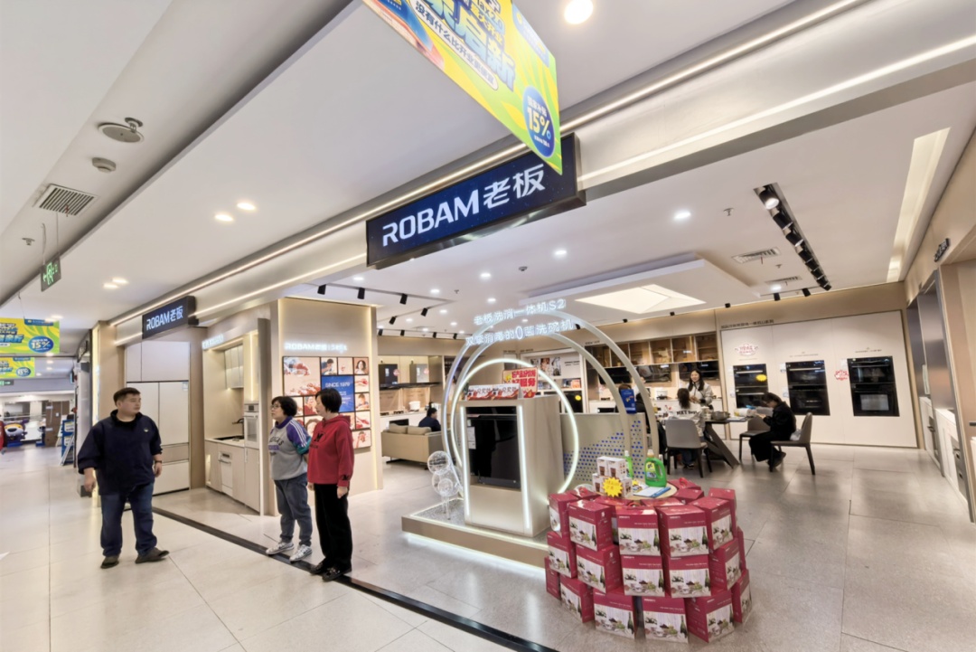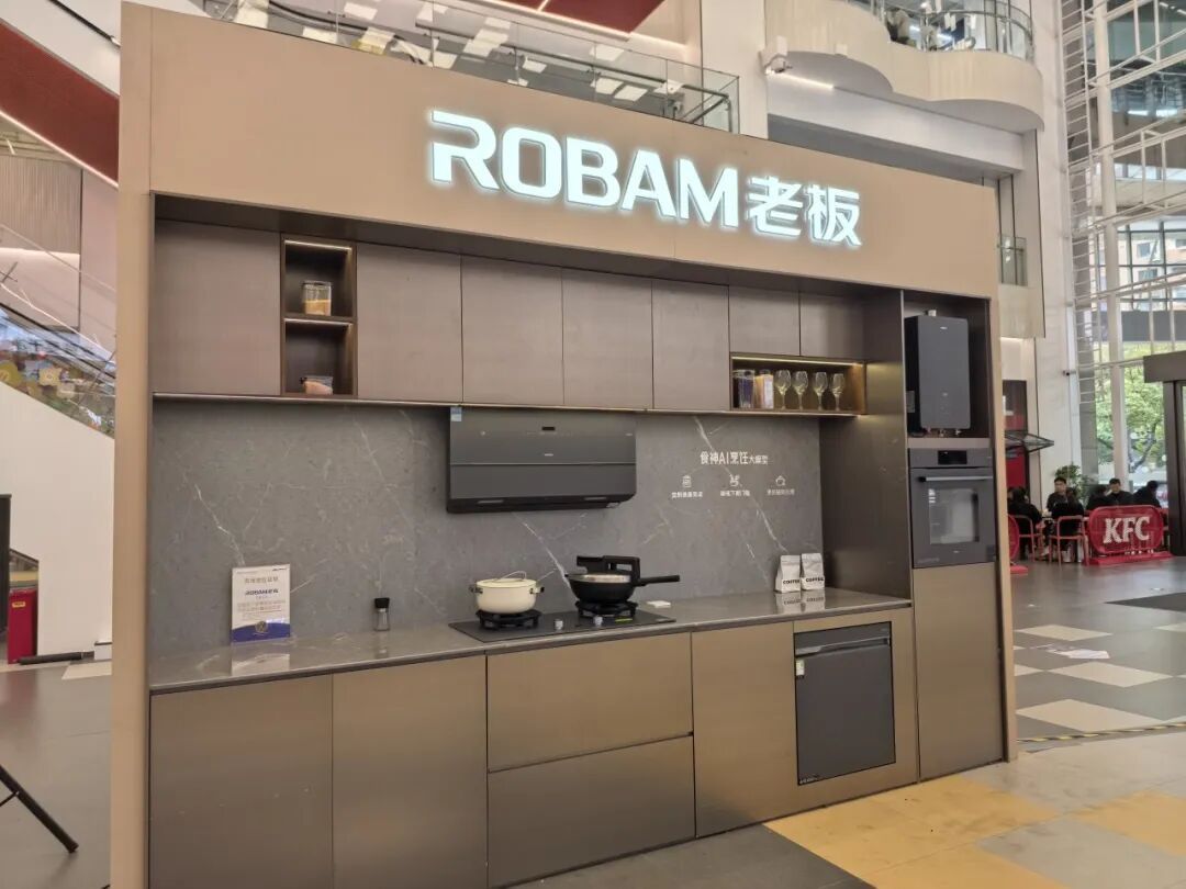 一层的商场中庭处,正在举办“全新一代老板AI数字厨电i1 Pro 新品发布会”,为市民解锁了2026年中国家电及消费电子博览会(AWE2026)的同款“AI烹饪伙伴”。这款套系新品涵盖油烟机、煤气灶等产品,搭载了老板“食神AI烹饪大模型”,多产品联动实现明火自动烹饪,还能定制健康菜谱,“厨房小白”也能轻松下厨。本次新品发布也是苏宁易购联合上海交家电协会及核心品牌伙伴启动“上海第一届AI智能家电节”中的重要活动之一。