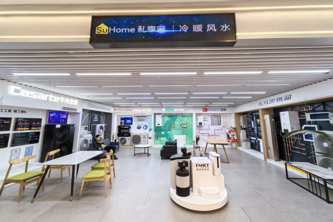 以1:1实景复刻家庭空间的苏宁“私享家”,提供一站式家电搭配、柜体定制等家装解决方案,凭借实景体验、个性化设计等优势,成为不少家庭装修和家装局改的选择。可以看到,中央地暖展示区域,管道走向、温控装置布局一目了然,清晰还原了地暖从设计规划到铺设调试的完整流程。“我们是一家五口的大家庭,在这里能沉浸式感受未来家的模样,一次性敲定整套方案,省心不少。”居民方小姐表示。