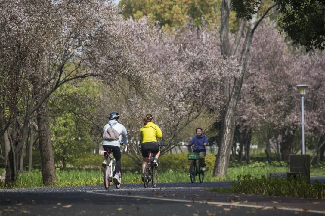 在长宁踏春,首选长宁外环绿道。这条全长6.25公里的生态绿廊,是春日里最宜人的漫步道、骑行线。一路绿意随行,风光移步换景,或慢行舒展身心,或骑行追风而行,在城市中央邂逅自然野趣,步步皆是惊喜。