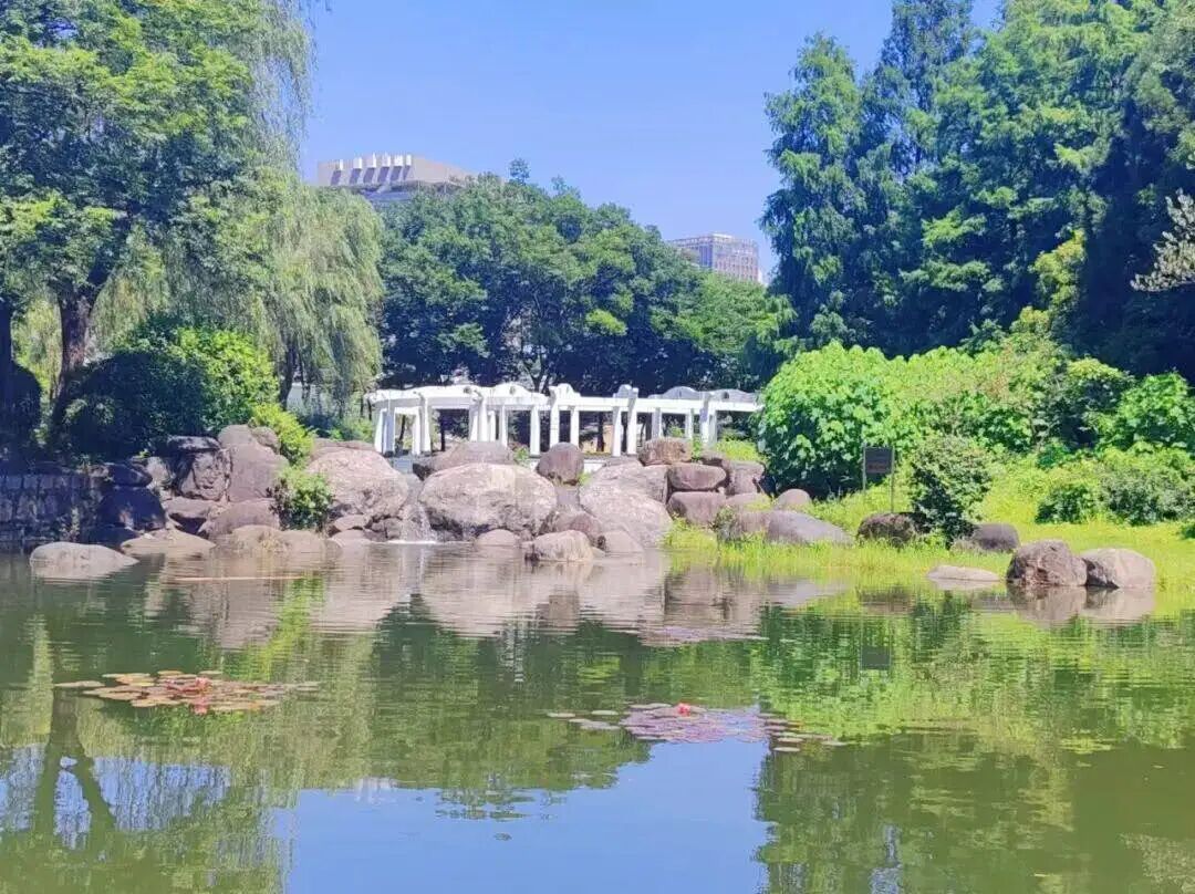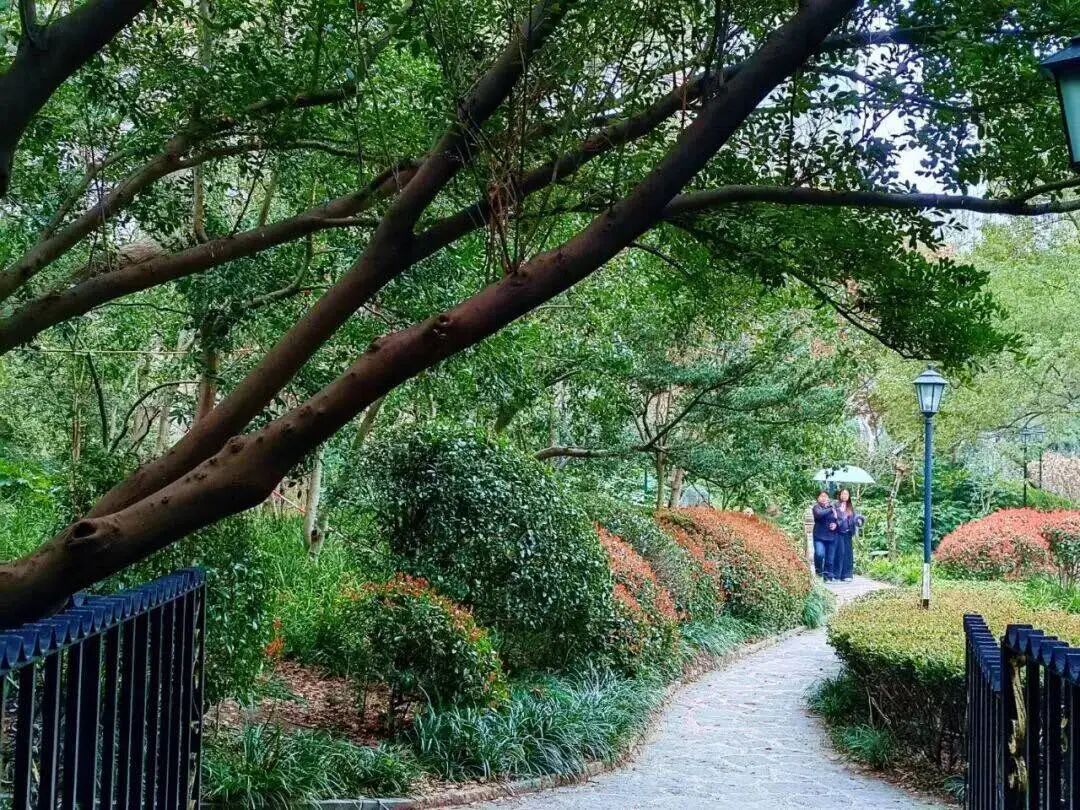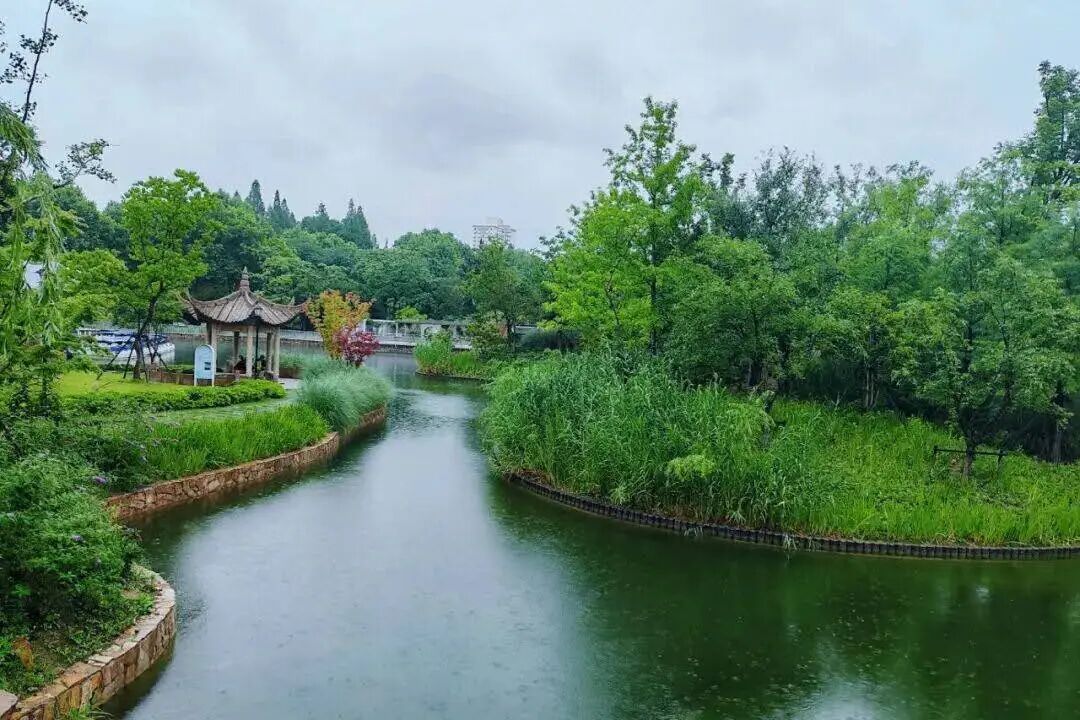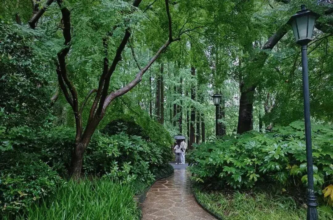 中山公园内古亭最是相宜。牡丹亭、春在亭、山地竹亭,掩映于花木之间,春雨绵绵之时,静坐亭中,听雨声淅沥,洗尽尘嚣。雨中园景清新明净,治愈人心。