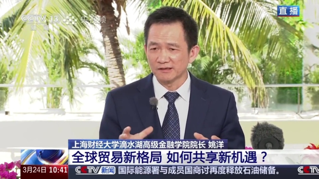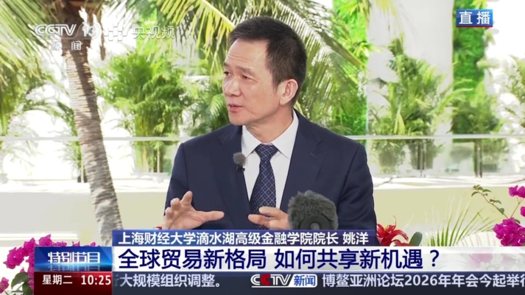 近日,在博鳌亚洲论坛期间,上海财经大学滴水湖高级金融学院院长姚洋接受中央广播电视总台《博鳌观潮》访谈,围绕海南自贸港政策红利、高水平对外开放路径以及中国—东盟合作新趋势等议题,分享了对全球贸易新格局下中国机遇与开放实践的观察与思考。