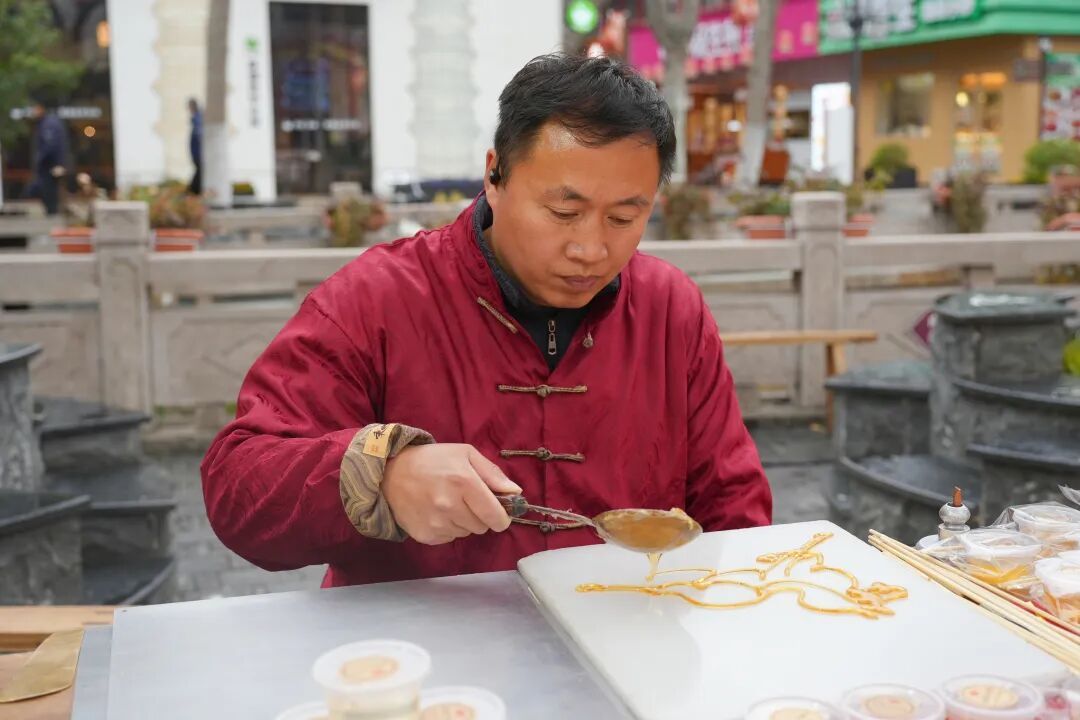 一边是飞驰向前的速度与激情, 一边是慢下来的烟火与匠心。 嘉定既有F1赛道的极速风采, 也藏着让人放慢脚步的诗意日常。 糖画、宋锦新饰、皮影文创…… 这些平凡却执着的手艺人, 用各自的坚守与创新, 让“慢”生活点亮了嘉定的烟火气。 一勺糖画 南翔古镇,这个被小朋友层层簇拥的糖画摊位前,总是弥漫着麦芽糖的香甜。摊主程庆伟在糖画这门老手艺上,已经坚守了16个年头。 炉火温热,糖稀金黄,他手持长勺,手腕轻扬、慢慢勾勒点染,无需底稿,便能将任意图案化为栩栩如生的糖画。从生肖、福字等传统纹样,到小朋友追捧的卡通形象,从平面造型到立体作品,他都能“按需定制”,随手即成。 这份手艺,源于一场美丽的机缘。早年,程庆伟在天津从事保安工作,一次逛古玩街时,被现场制作的糖画深深吸引。自幼喜爱画画的他,当即被这门融艺术与甜蜜于一体的技艺打动,当场拜师学艺。 在他心中,糖画不只是技艺,更是传递快乐的载体。做糖画急不得,要慢、要稳、要用心,这是老祖宗传下来的“慢功夫”。看着孩子们拿到糖画时的笑脸,看着游客品尝甜蜜时的满足,他便觉得这份坚守充满意义。 古镇的宋锦饰品摊位前,项链、耳环、发簪等饰品琳琅满目,宋锦的典雅大气,搭配螺钿、掐丝绒花的精致细腻,尽显东方美学。摊主张静,用一件件作品,圆了自己从小的首饰梦。 生在农村的她,小时候看到城里亲戚佩戴的串珠项链,心生喜爱,因当时条件有限无法拥有。懂事的她没有失落,而是用玉米粒亲手制作了一条“项链”,也在心里埋下梦想:长大后,要拥有一家属于自己的首饰店。 新中式风潮兴起后,她敏锐地将传统宋锦与现代饰品结合。宋锦质地细腻,制作急不得,每一件都要慢工出细活,耐心打磨。从最初手法生疏、成品粗糙,到如今做工精致、风格独特,她一路打磨、不断突破。其原创螺钿饰品《千里江山》,凭借典雅设计与精湛工艺,荣获2025年第二届工艺美术品设计师创新设计大赛铜奖。 对她而言,小小的摊位,承载的是童年热爱与匠心追求。她愿意把时间“慢”给每一件饰品,也希望每一位爱美的顾客,都能在这里找到属于自己的中式浪漫。 市集里,皮影衍生装饰画摊位别具韵味。摊主王飞本是一名专业皮影戏表演者,多年舞台经验,让他对非遗传承有了新思考。 过去演出结束后,常有观众希望留下皮影作纪念,可传统皮影只适合表演,难以融入日常。为了让喜爱皮影的朋友能真正“把皮影带回家”,他大胆创新,将皮影制作工艺与装饰画结合,让戏台艺术变成家居风景。 皮影雕刻、上色、装裱,每一步都考验耐心,急不得,只能慢慢来。在慢工细作中,他让传统皮影有了新模样。他的摊位上,既有福字纹样、十二生肖、才子佳人等传统题材,也有为年轻人量身打造的“马上有财”萌趣小马,兼顾经典与潮流。 在王飞看来,传承不是固守,是慢下来,沉下心,让皮影走进生活、贴近大众,才是最好的延续。这一份创新,既留住了皮影的艺术精髓,又拉近了非遗与现代人的距离。 一勺糖、一匹锦、一张皮影, 三位手艺人,三段匠心故事。 他们守着老手艺, 享受慢时光,融入新创意, 让传统文化有温度、可触摸。 也为嘉定, 增添了最动人的烟火与匠心。