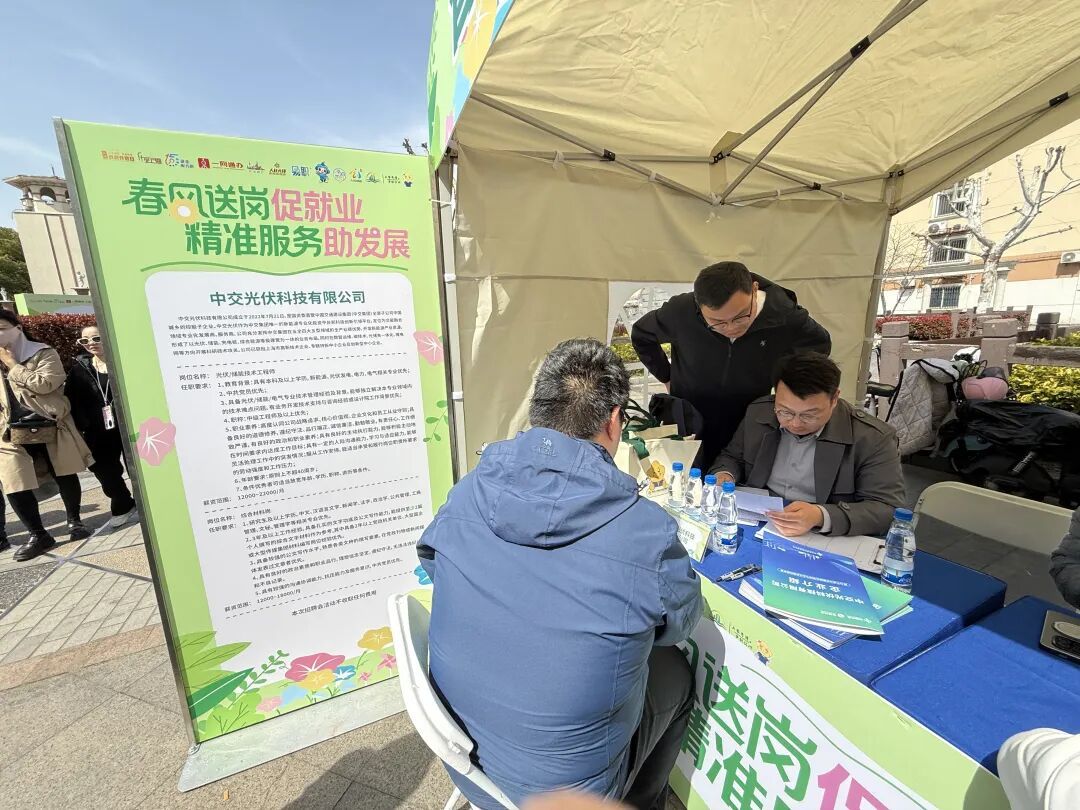 “相较于线上招聘,线下能和求职者面对面沟通交流,不仅更直观、更真实,交流氛围也更轻松,沟通效果自然更好。本次我们带来了光伏储能技术工程师、综合材料岗两个岗位,月薪均在12000元以上,现场已收到了不少求职者的简历。” 中交光伏科技有限公司招聘负责人表示。