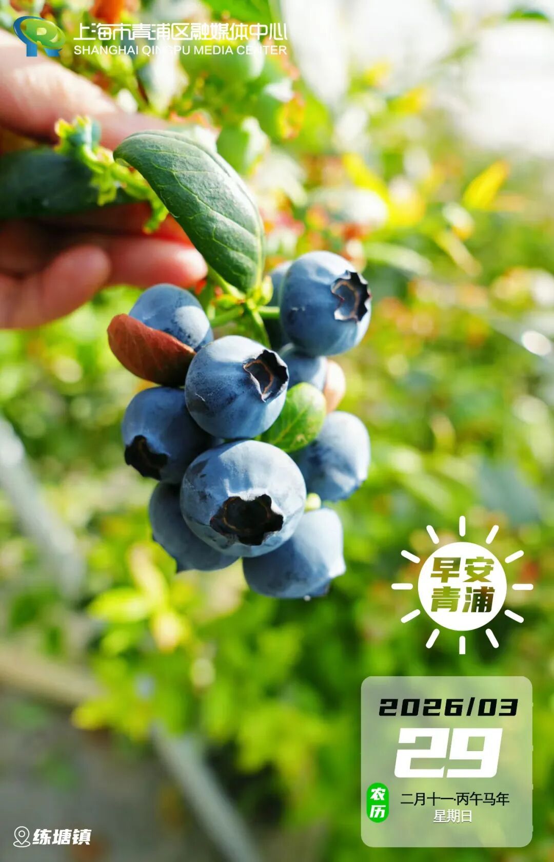 明媚三月,青浦的春色正浓得化不开。各类鲜花开得热烈,织就一片片烂漫花海。练塘的蓝莓也已成熟,颗颗饱满如蓝宝石,缀满枝头。风里有花香,枝头有甜果,日子被温柔填满,满是值得期待的美好。