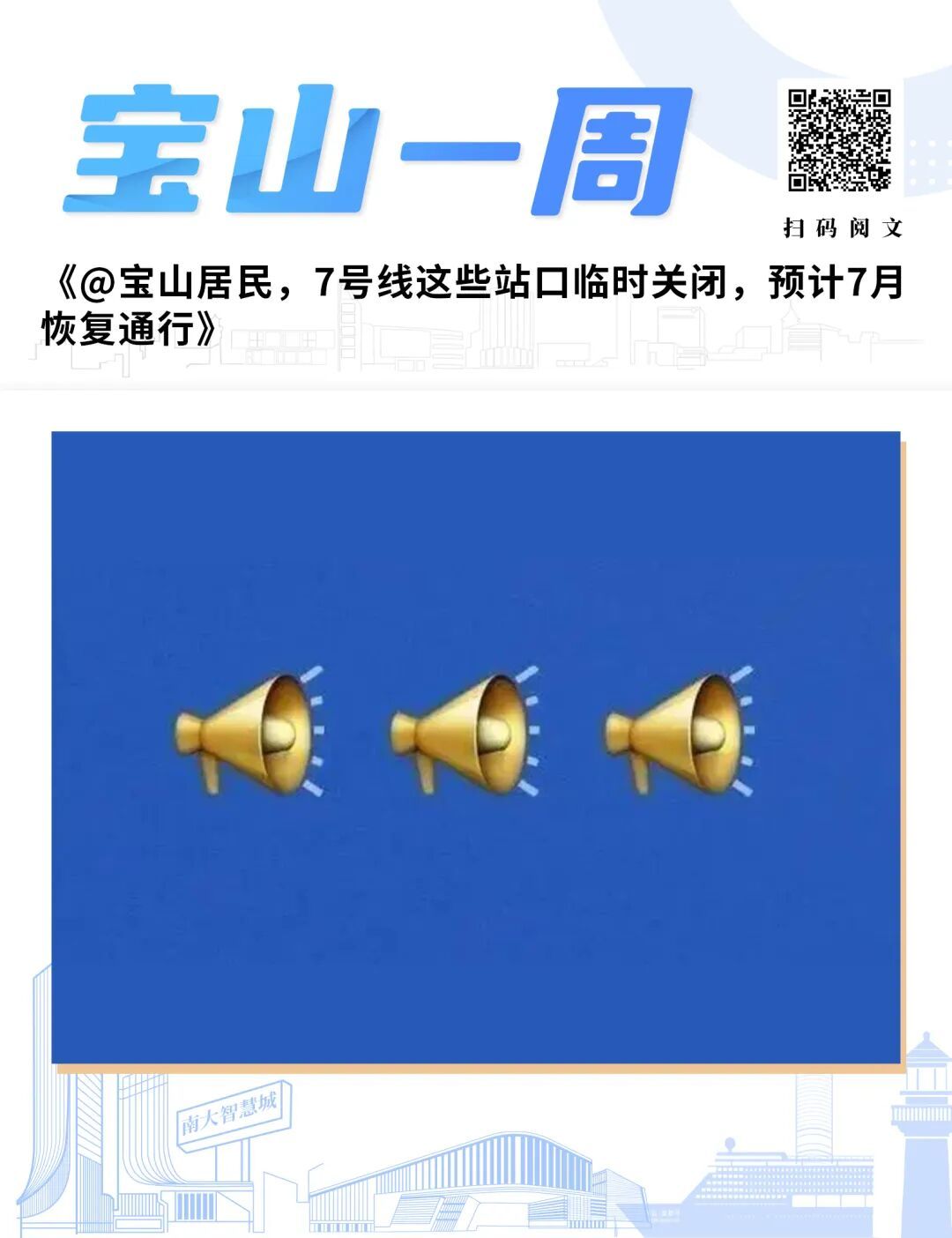 @宝山居民,7号线这些站口临时关闭,预计7月恢复通行