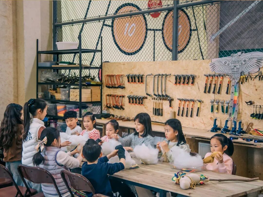 从亲子到团建 满足多元人群的“松弛感” 见到Jolly Space主理人卢莹时,她刚送走一批前来团建的客人。据介绍,团建业务占场地总业务的20%,而亲子家庭占比高达80%。“周末几乎都是家庭包场,孩子们在室内外尽情撒欢,家长们可以在自然氛围中放松身心、自在社交。”卢莹说。