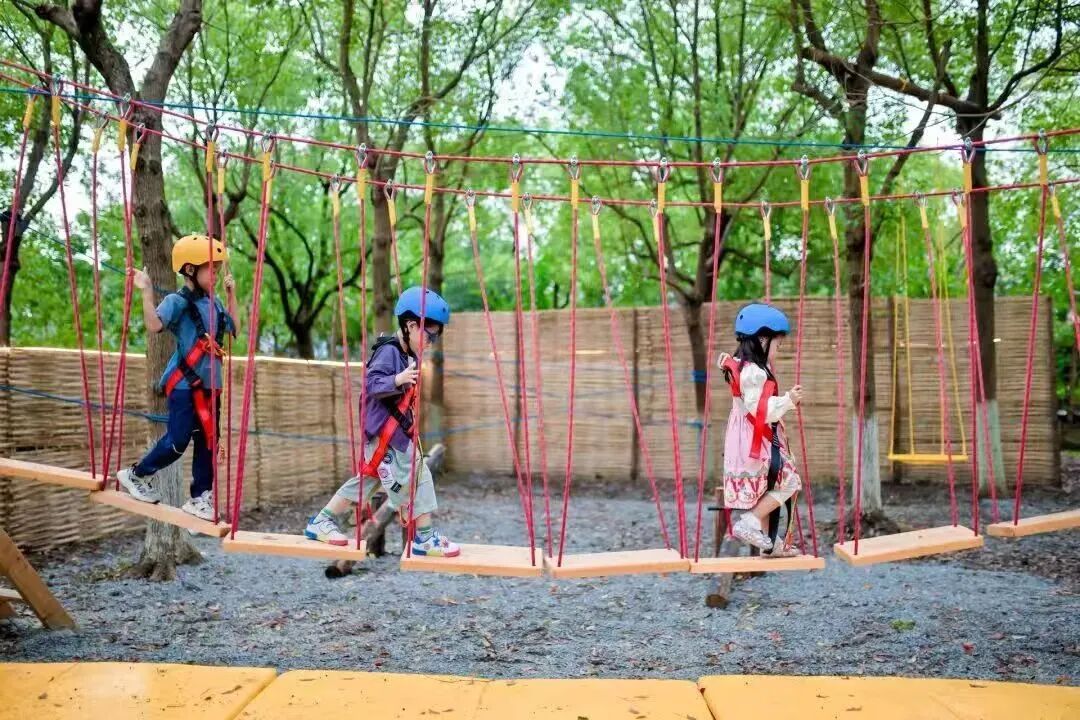 在“苏州河第一村”赵家村的村道旁,一处名为“Jolly Space”的复合式餐饮运动派对天地悄然兴起。推开木门,高大林木、秋千、小木屋、儿童体能索桥与工业风建筑相映成趣,复古自然与乡野松弛感扑面而来。自去年10月试运营以来,这里每逢周末便常常包场火爆,成为沪上家庭与年轻群体争相打卡的乡村“微度假”新目的地。