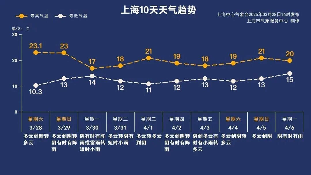 下周一申城将有一次明显的降水过程,局部地区雨量可达大雨,期间可能伴有雷电活动,注意防范雷雨、大风等强对流天气。下周西南暖湿气流活跃,周二以及周四至周五仍有降水过程,其余时间以多云或阴的天气为主。气温方面,下周最低气温在11~14℃,最高气温在17~21℃,伴随降雨过程气温相对较低。