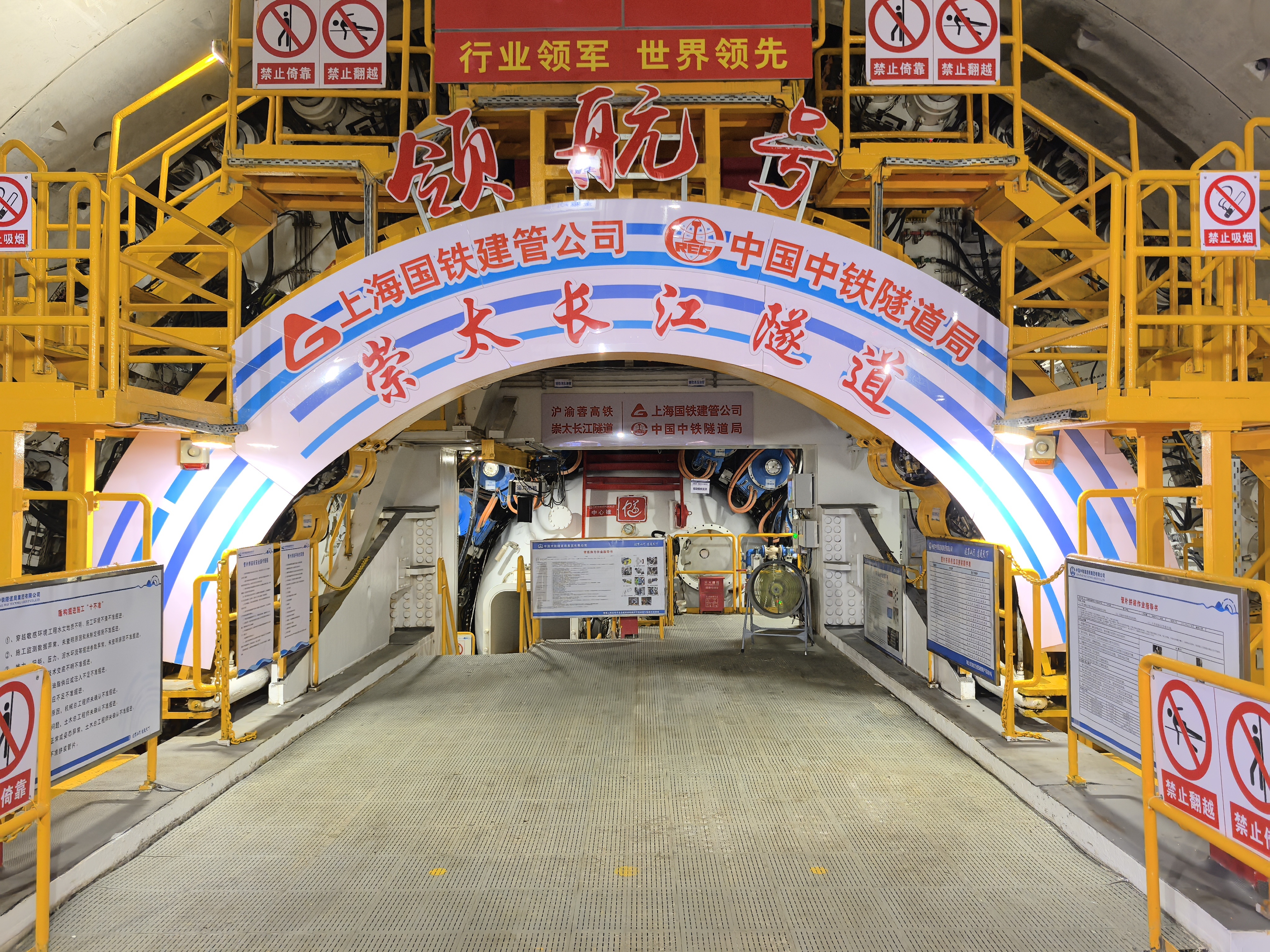 崇太长江隧道是我国“八纵八横”高速铁路网沿江高铁通道、沪渝蓉高铁沪宁段关键控制性咽喉工程。隧道全长14.25千米,是世界高铁盾构隧道独头掘进距离最长(11.325千米)、刀盘直径最大(15.4米)、水下过江隧道行车速度最高(350千米/小时)、长江水下最深(89米)的隧道,是我国目前建设标准最高、掘进距离最长、规模最大的世界级高铁越江隧道。该隧道由上海国铁建管公司建设管理、中铁隧道局施工建设,隧道建成运营后,将实现高铁穿越长江不减速的壮举。