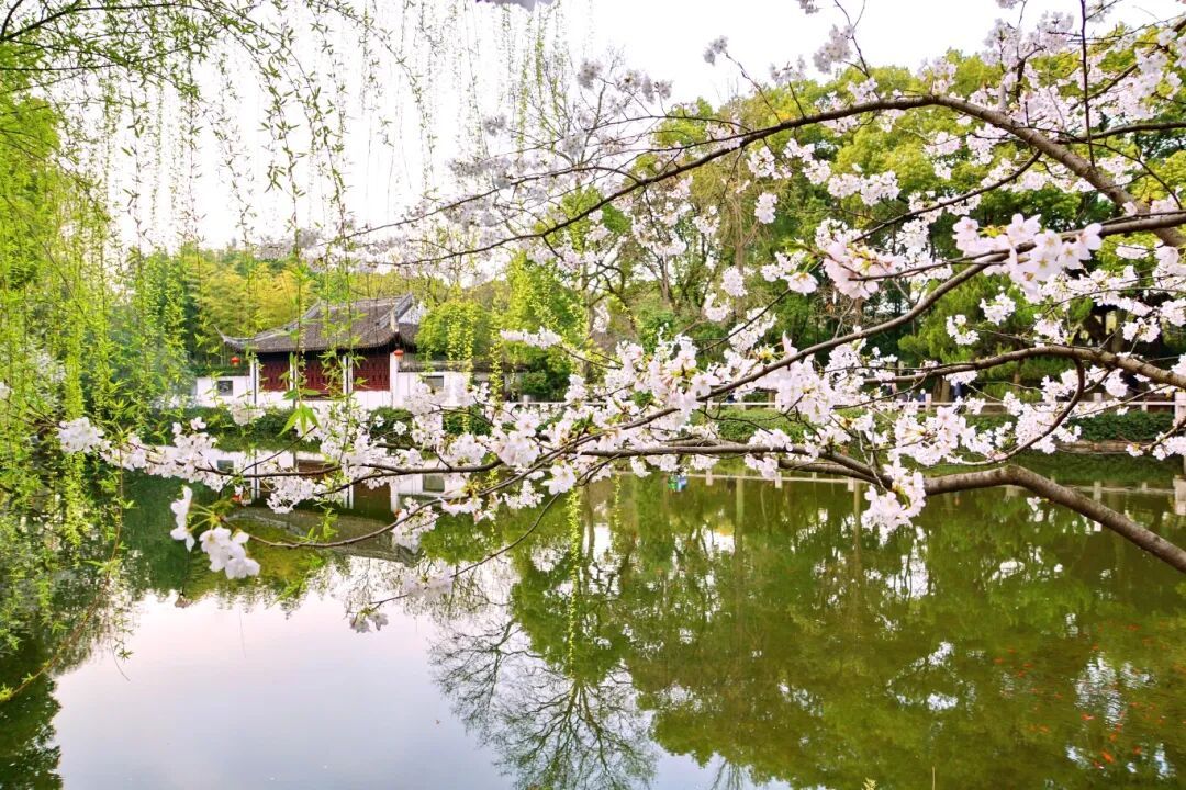 花枝垂落水面