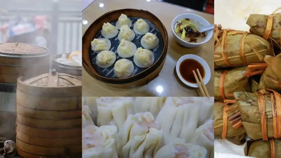这家枫泾烧麦店只售自制烧麦与大肉粽。烧麦皮为独家配方,薄而柔韧,能兜住汤汁。趁热咬破,汤汁涌出,肉香混着笋丁清甜,配上一碗紫菜蛋皮汤,清爽解腻。
