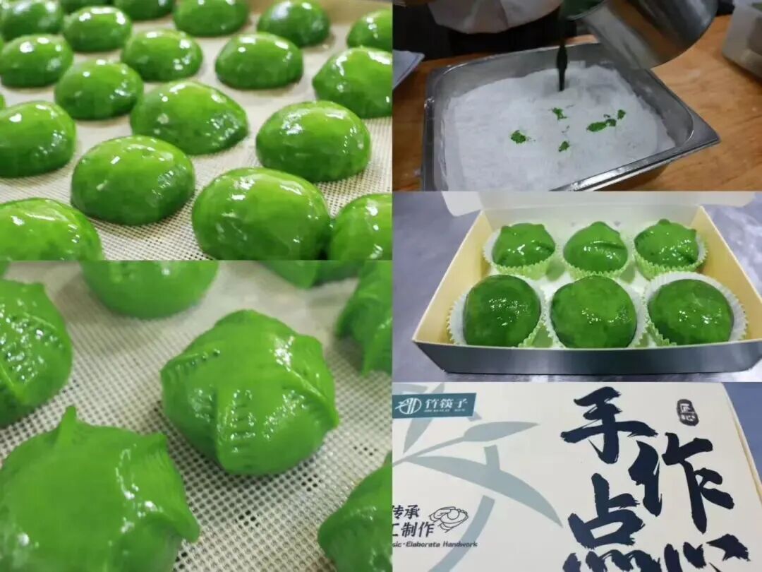 清明将至,食堂还上新了青团,豆沙、雪菜笋丁两种口味,一口尝尽春日鲜。