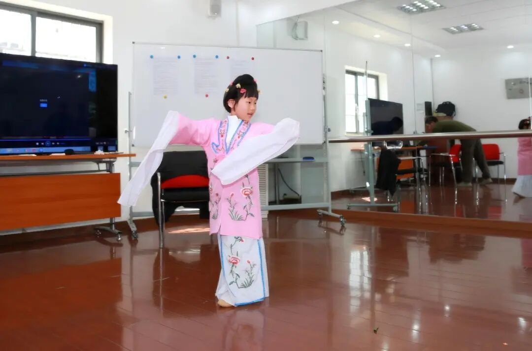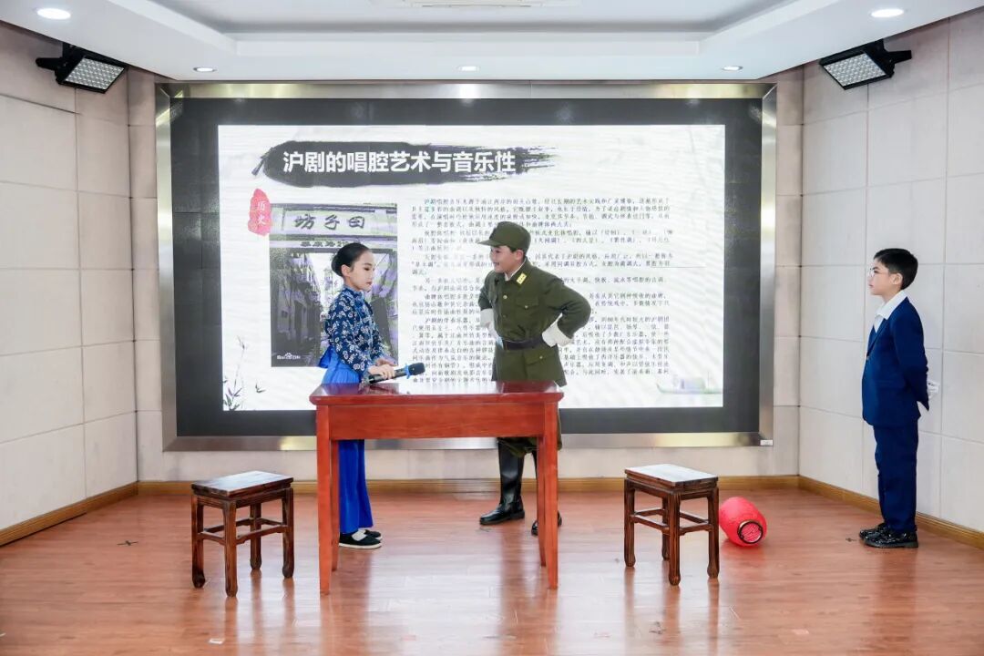 最热闹的还要数孩子们的“专属区”。沪语小戏迷公开课上,小朋友们穿上戏服,学着比划身段,咿咿呀呀跟着老师唱沪剧,萌态十足。