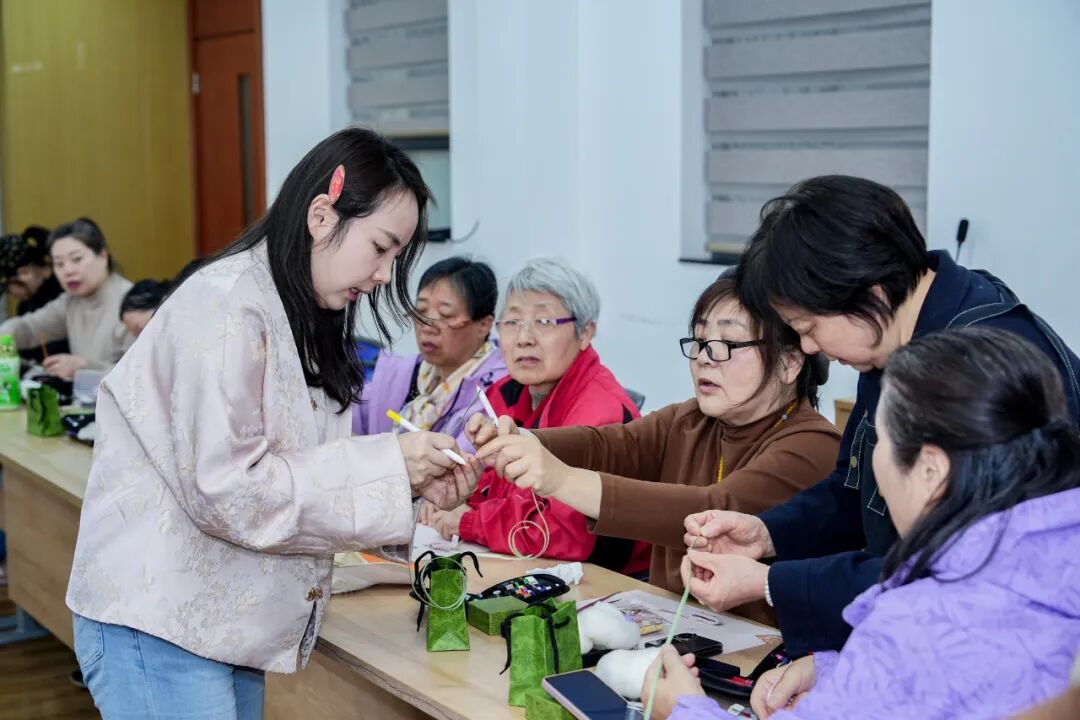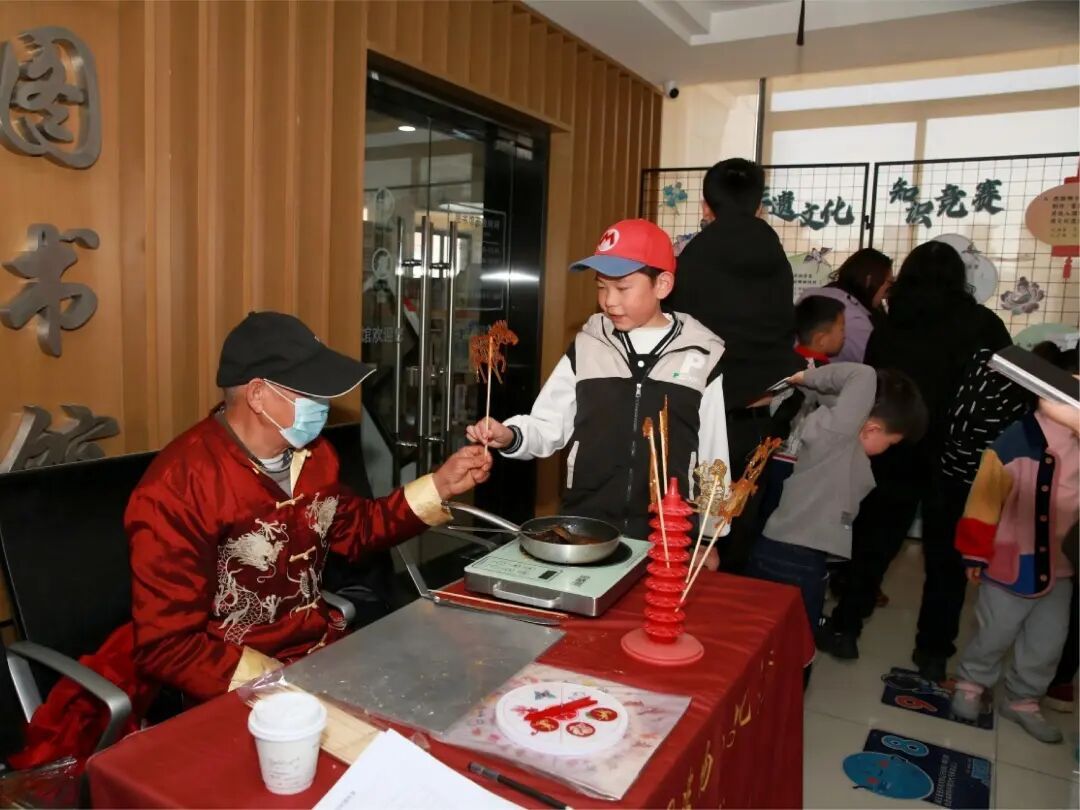 宋锦盘扣DIY的桌边坐满了人,居民们在老师指导下,把千年宋锦布料一点点盘成精致的扣子,指尖翻飞间,传统手艺“活”了过来。糖画摊前更是排起了长队,老师傅手腕一转,金黄的糖丝就变成了蝴蝶、小兔,孩子们举着糖画舍不得吃。