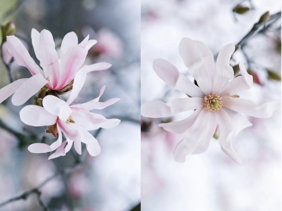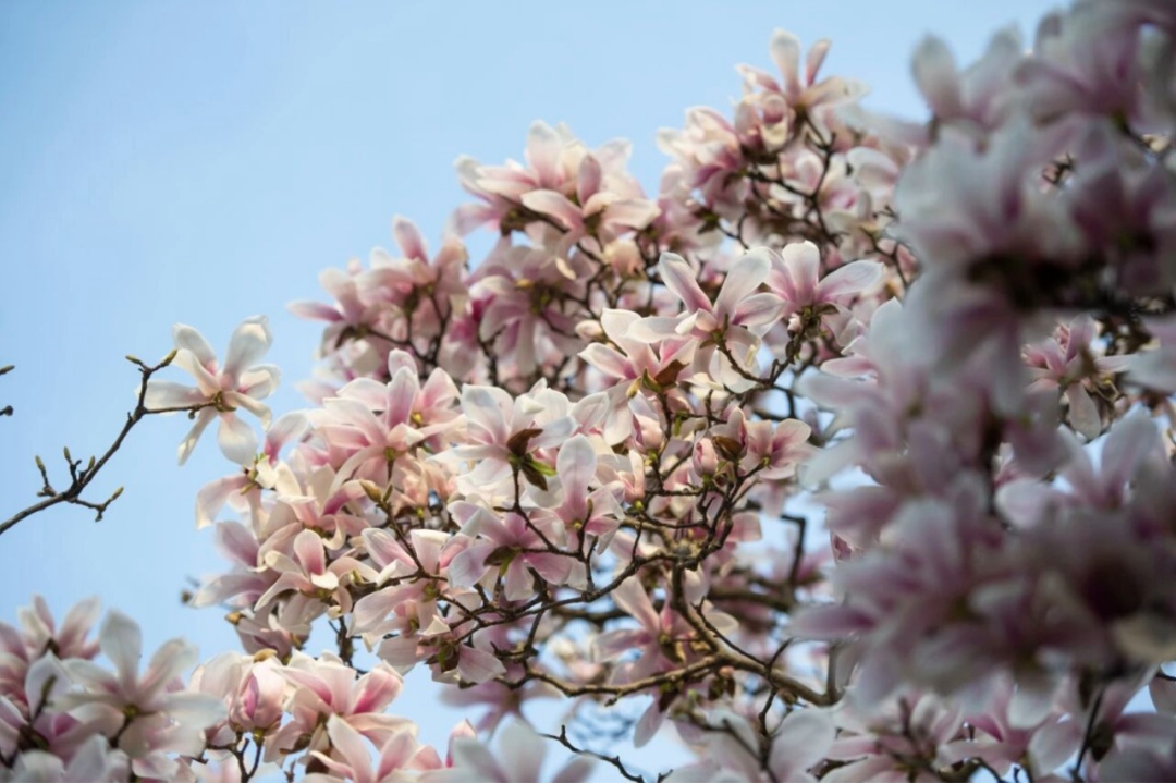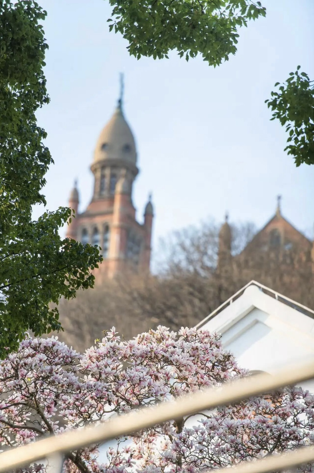 步行至西佘山,天文台庭院中,几棵高大的百年二乔玉兰迎来盛放。二乔玉兰粉白的花瓣尤为娇俏可爱,它们与百年天文台交相辉映,尽显古朴雅致。要抓紧时间赏花了,3月底,它们将进入末花期。