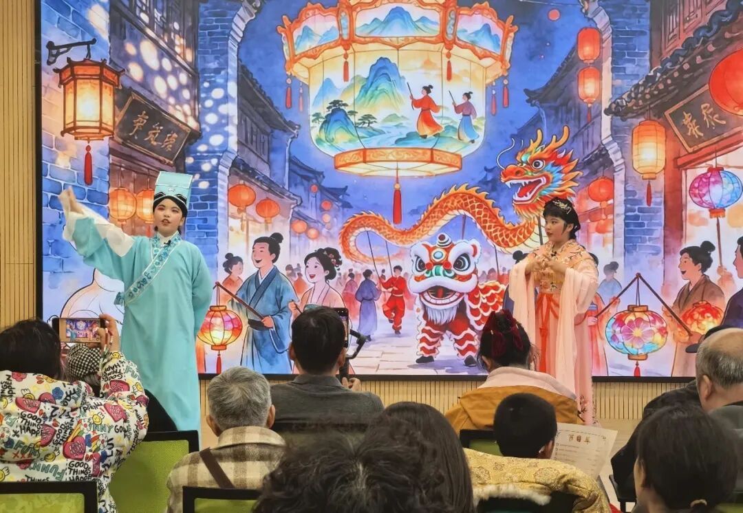 演出过程中,台下居民沉浸其中,掌声、喝彩声此起彼伏。有观众表示:“在家门口就能看到这么正宗的越剧演出,太过瘾了!”这场“零距离”的戏曲盛宴,既为社区戏曲爱好者搭建了展示交流的平台,更让传统越剧文化扎根社区、浸润民心,推动美育理念走进日常。